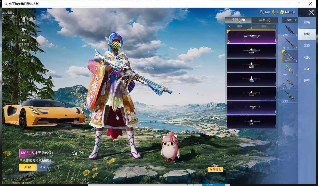 实名: 可修改 时装数: 150 载具数: 4 枪械数: 189 战备数: 141 热门装扮: 宝贝奶油派,炙焰红王,花间之火,洛天依,恐龙拽拽,筑梦精灵,傲雪凌霜,垂柳戏鸭 载具: 玛莎拉蒂Ghibli(粉),合金龙骨(蓝),路特斯ELETRE(冰川蓝),路特斯EVIJA(星际黄) 稀有枪皮: 五级Vector-环太平洋,五级MG3-洛神天依,五级M416-风花雪月,五级Kar98K-巳巳如意