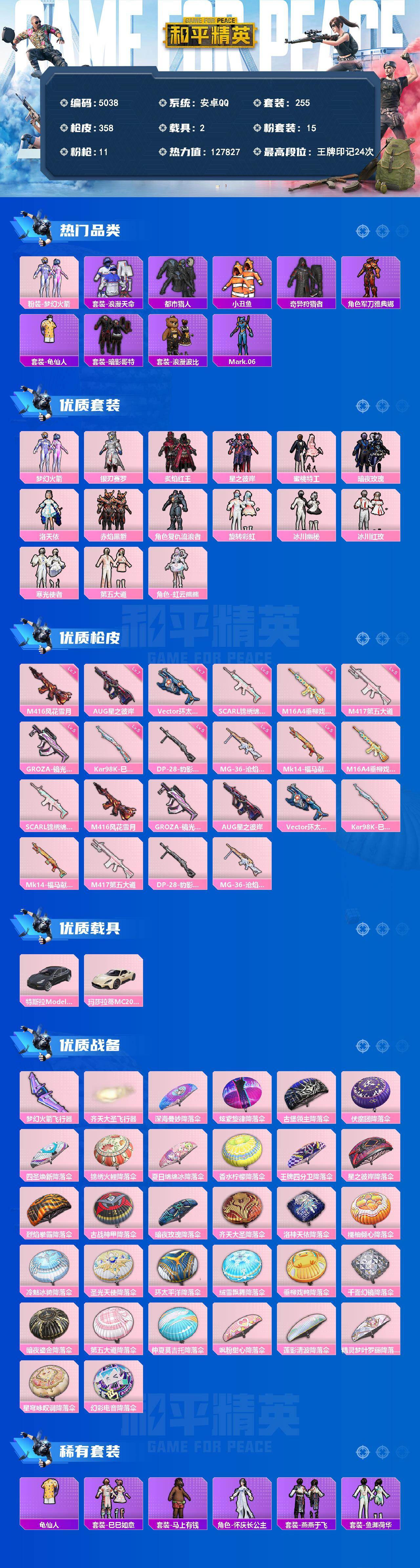 都市 眼罩安卓 手Q-15粉装-11特效枪-2载具-2粉色飞行器-127827热力值-24王牌印记-255套装-358枪皮