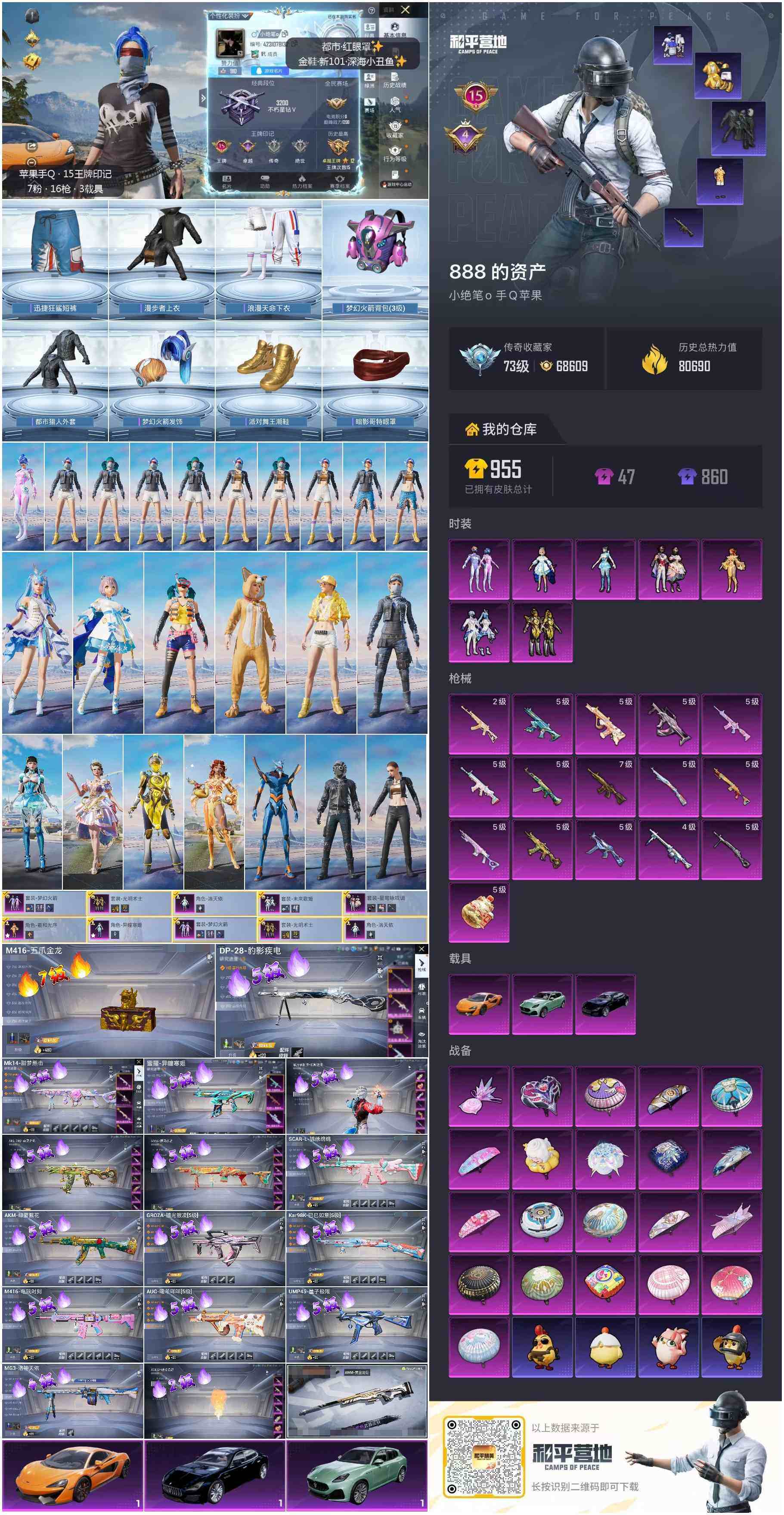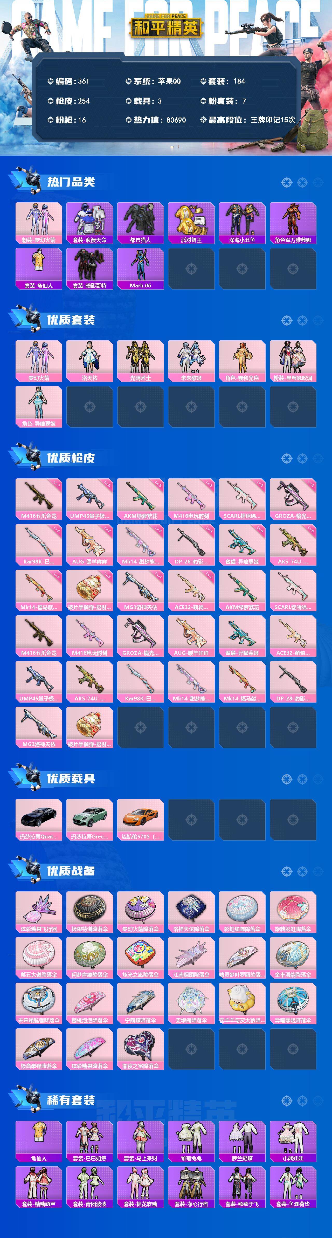 A1994苹果 手Q-7粉装-16特效枪-3载具-1粉色飞行器-80690热力值-15王牌印记-184套装-254枪皮