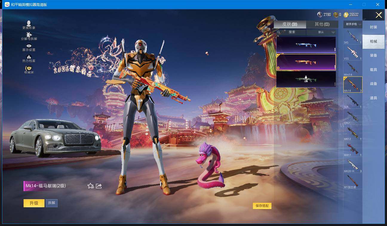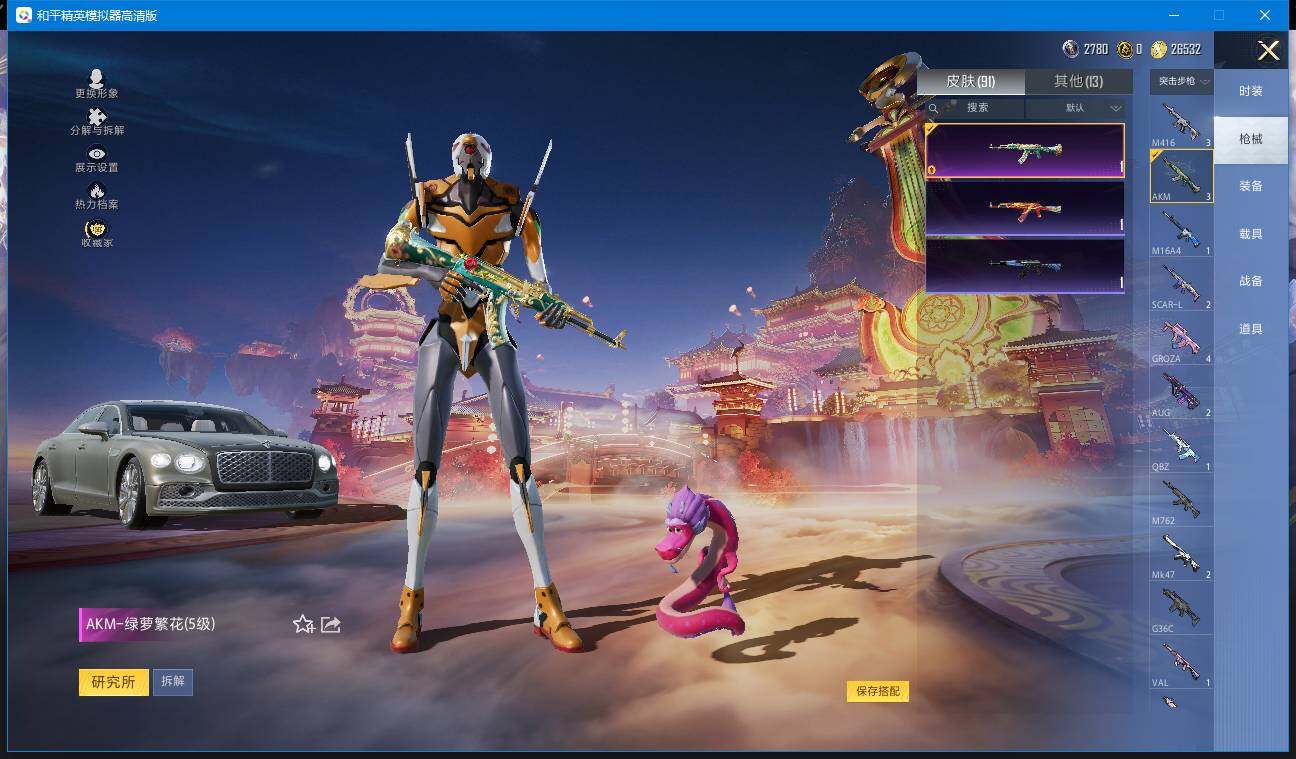 时装数: 328 载具数: 4 枪械数: 91 战备数: 70 热门装扮: 鹰眼刺客,零号机款机体服,冰川红玫,赤蝎幽灵,蔷薇星,闲梦青缨,射星猎手,室女星神,宙之时溯,星云暗核,萨利娅,异瞳寒姬 载具: 合金龙骨(绿),兰博基尼Aventador SVJ(翡翠绿),路特斯ELETRE(花绽灰),宾利飞驰(布罗德盖棕双色) 稀有枪皮:AKM-绿萝繁花(五级),M416-超新星(三级),ACE32