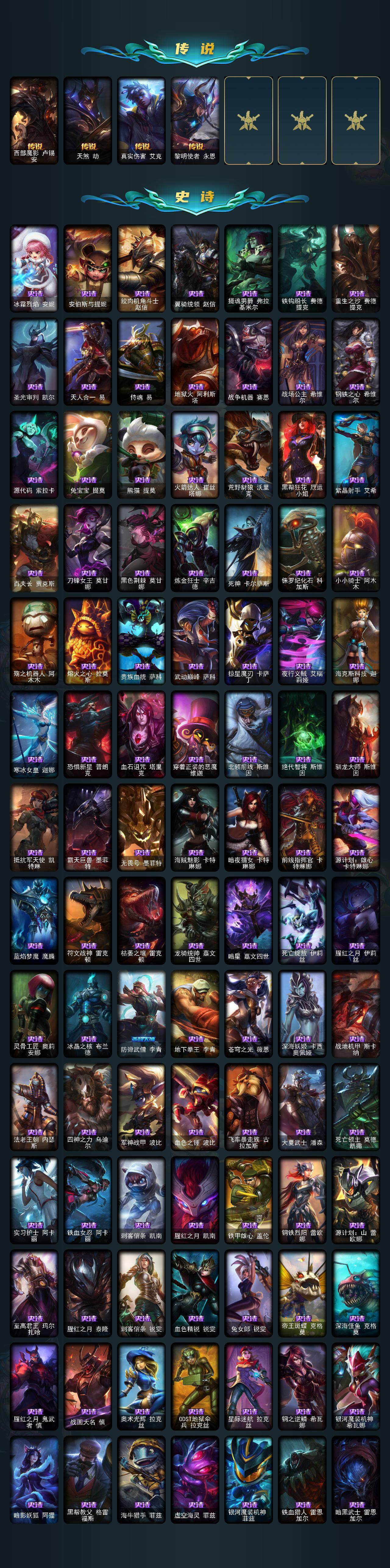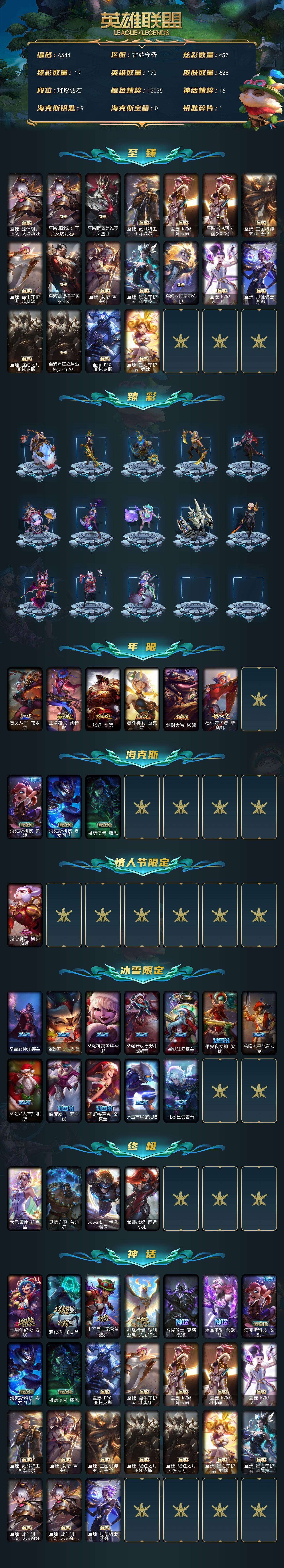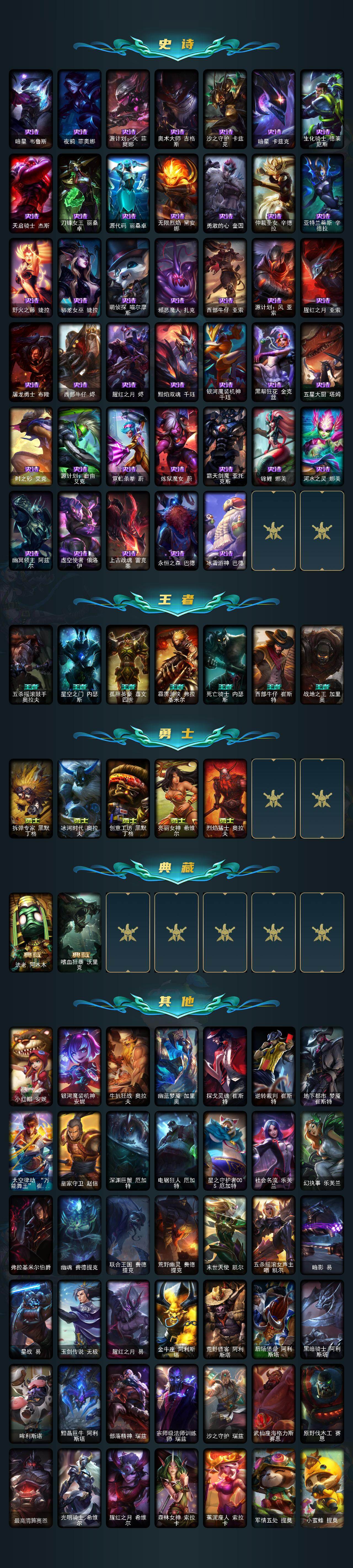 钻石段位-172英雄-625皮肤-452炫彩-4终极-27神话-66限定-60传说-138史诗