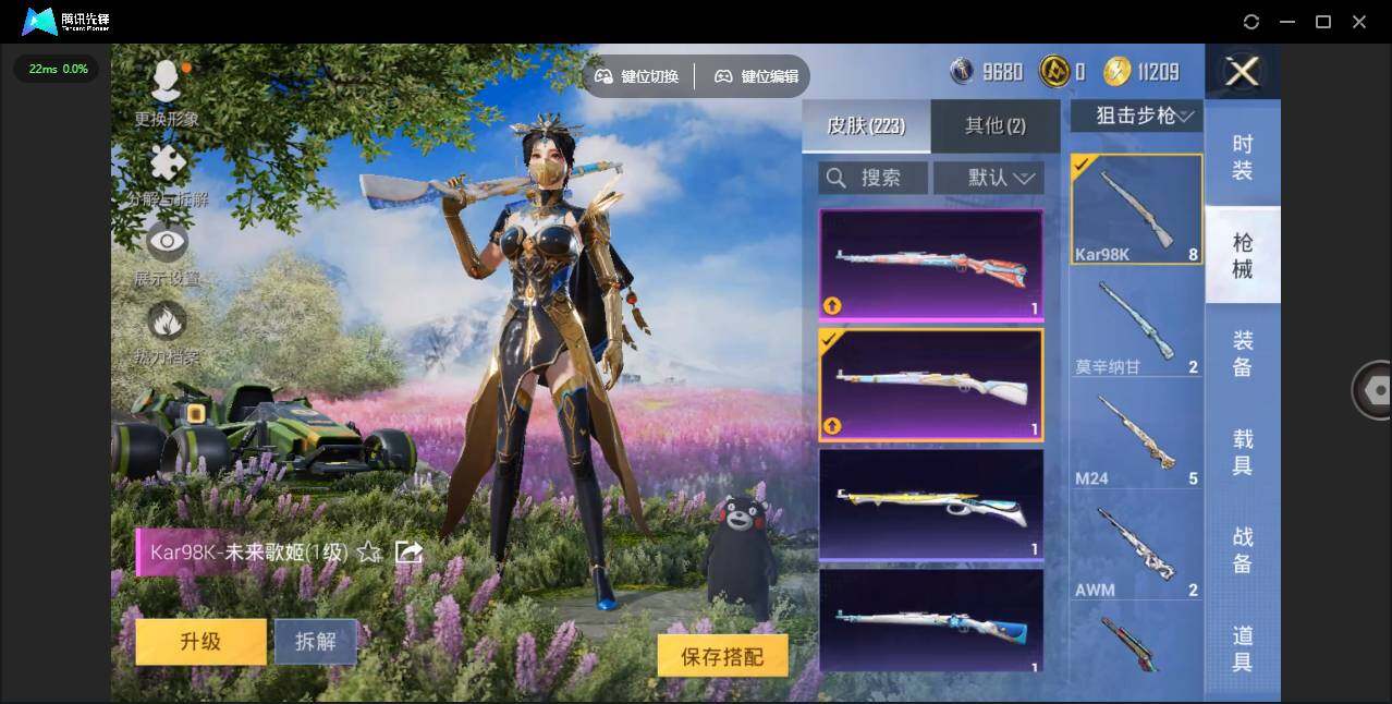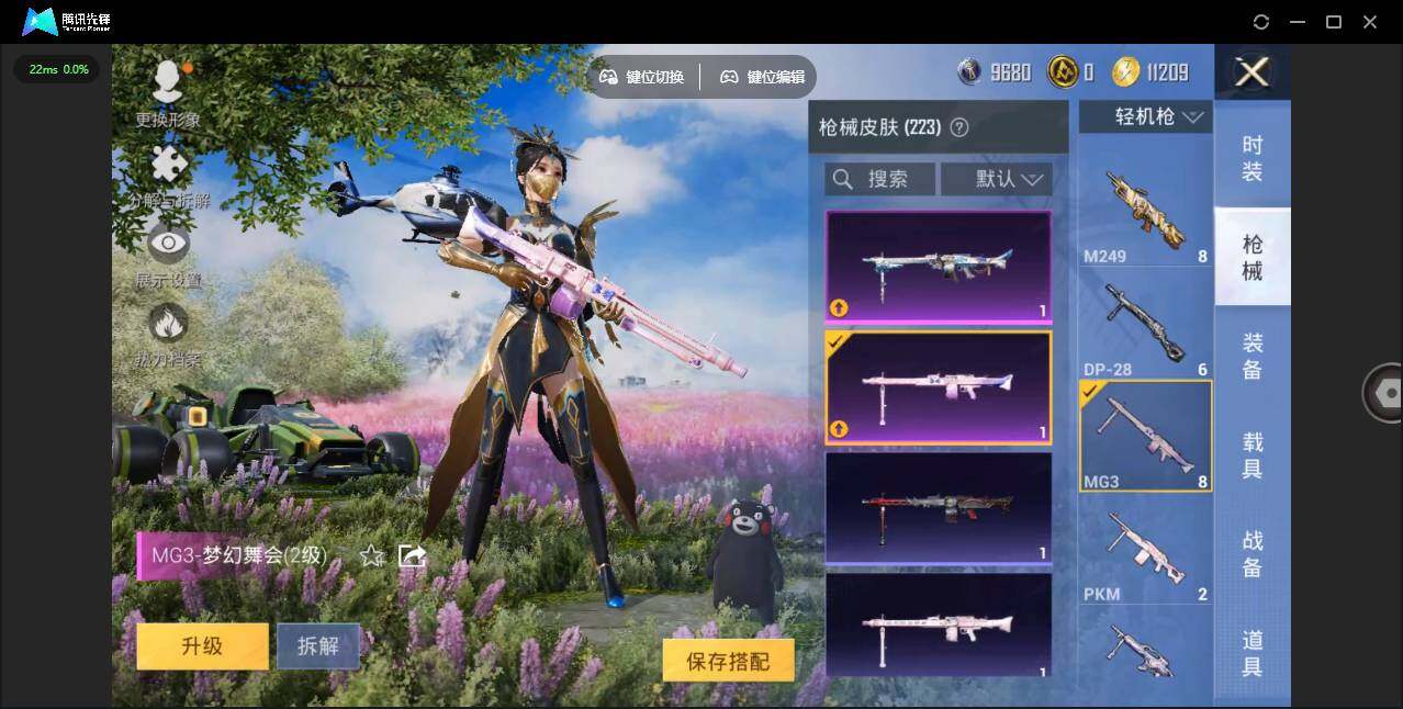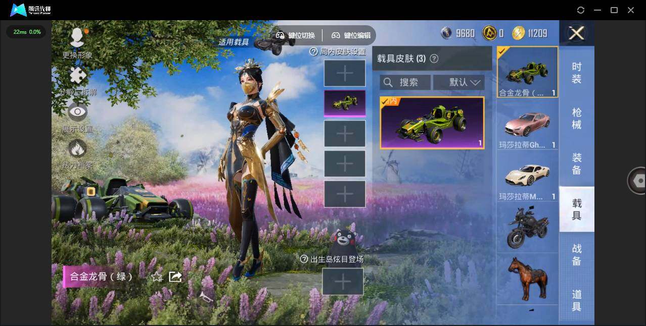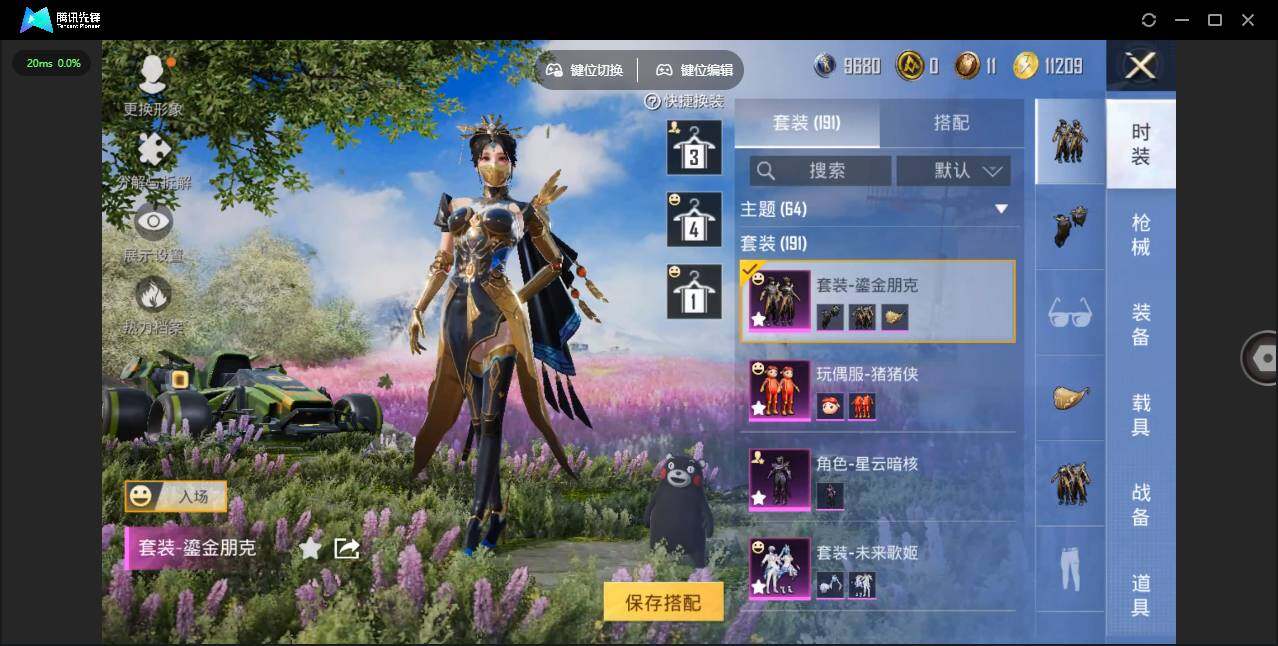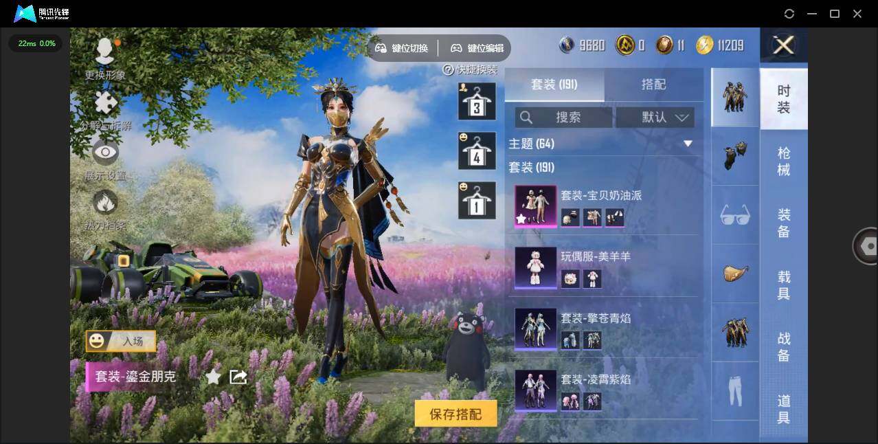 时装数: 782 载具数: 3 枪械数: 223 战备数: 171 热门装扮: 奇异狩猎者,梦幻火箭(新101),呆萌铁蟹,宝贝奶油派,浪漫波比,梦魇先生,金属狂野,鹰眼刺客,苍蓝魅影,花间之火,迷蝶贵族,暗夜玫瑰,洛天依,庄周梦蝶,寒光使者,霁雪冰心,激萌罗小黑,奇迹天团,蔷薇魔法师,暗夜鎏金,未来歌姬,室女星神,星云暗核,猪猪侠,鎏金朋克 载具: 玛莎拉蒂Ghibli(粉),合金龙骨(绿),