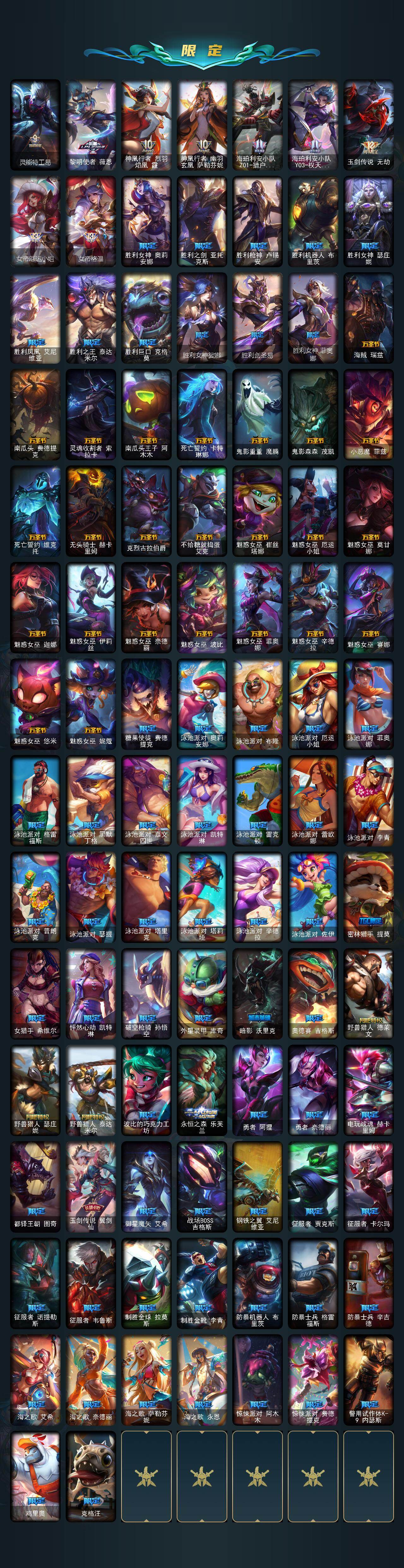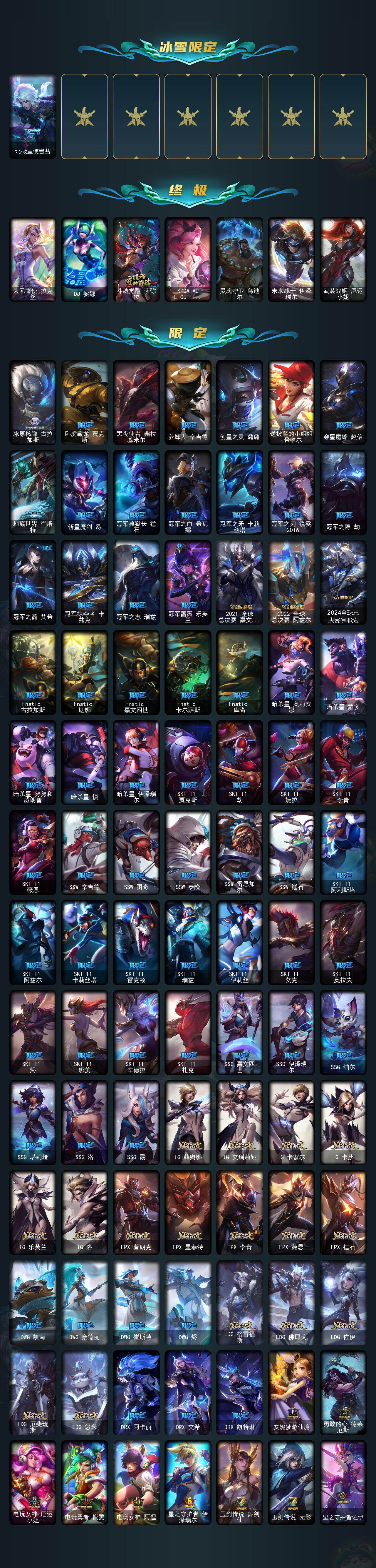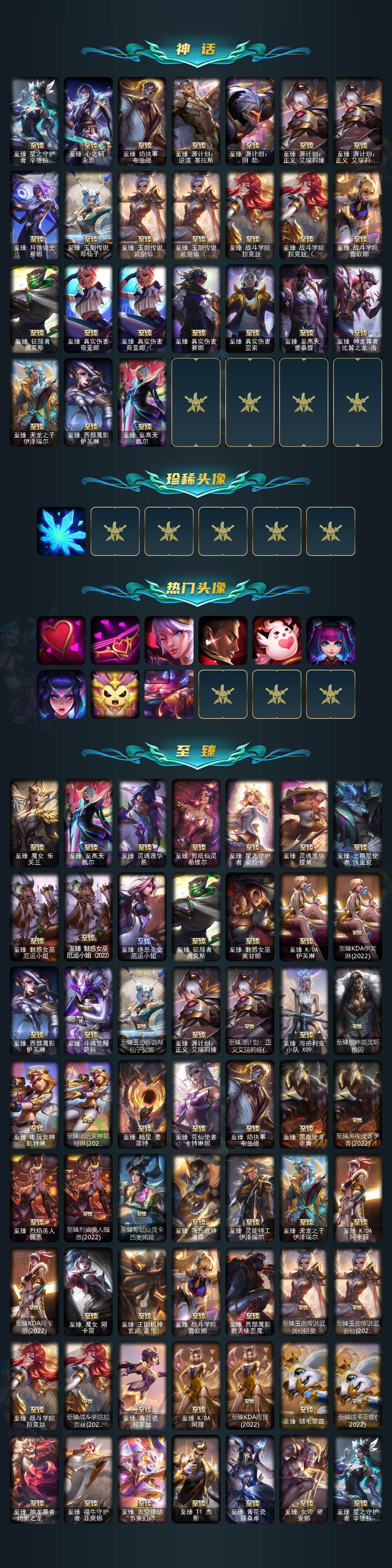 未定级段位-171英雄-1422皮肤-825炫彩-9终极-133神话-303限定-119传说-210史诗