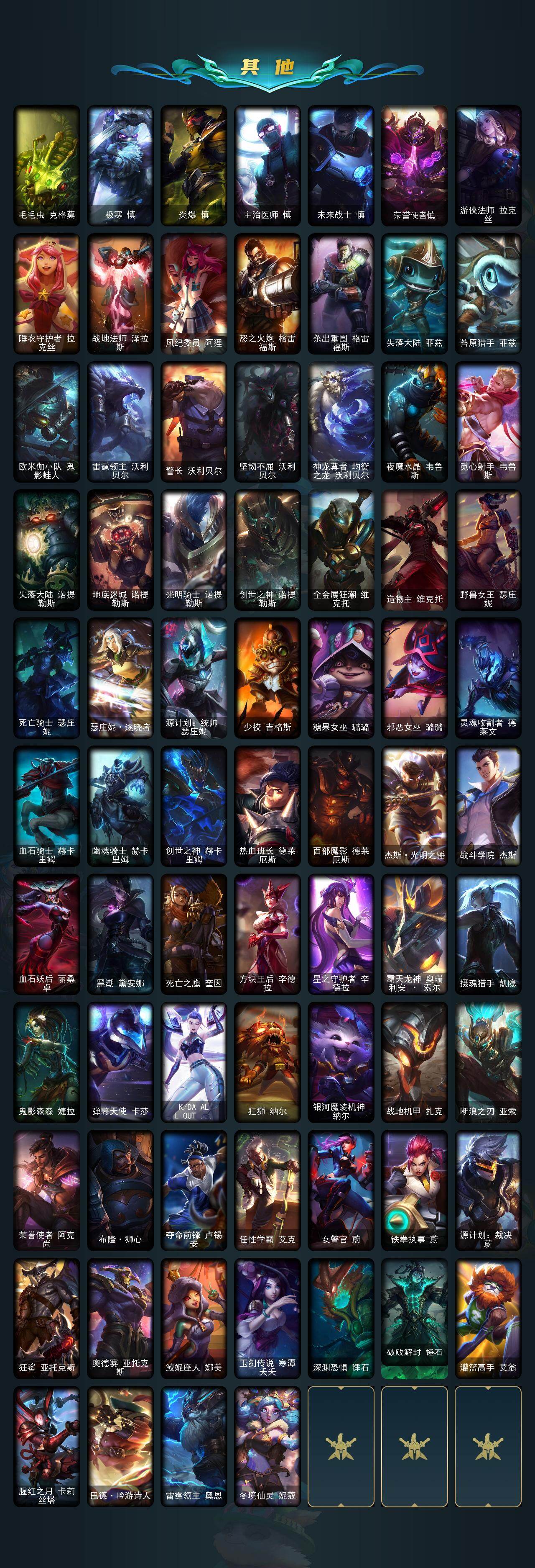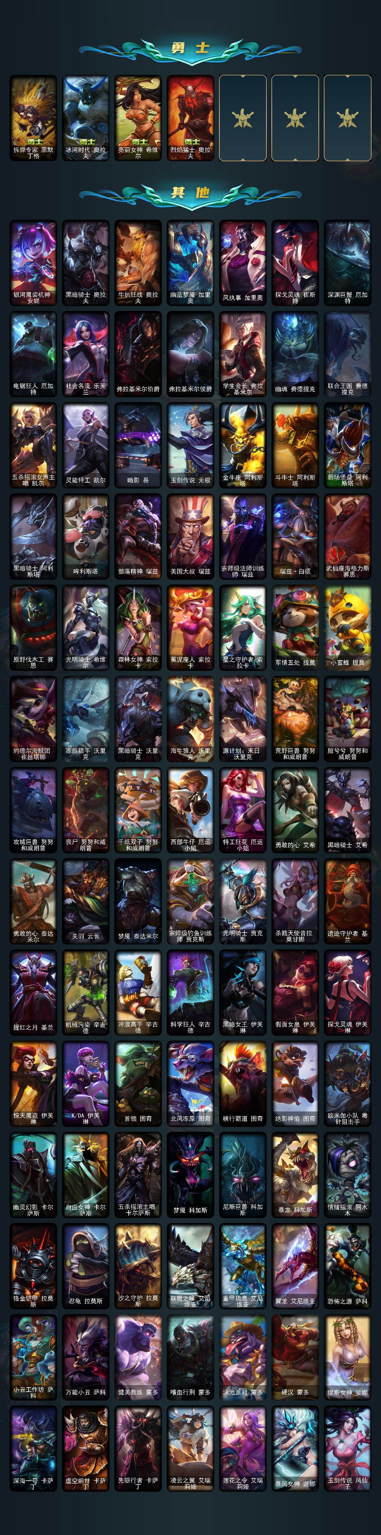黄金段位-172英雄-637皮肤-16炫彩-3终极-20神话-90限定-57传