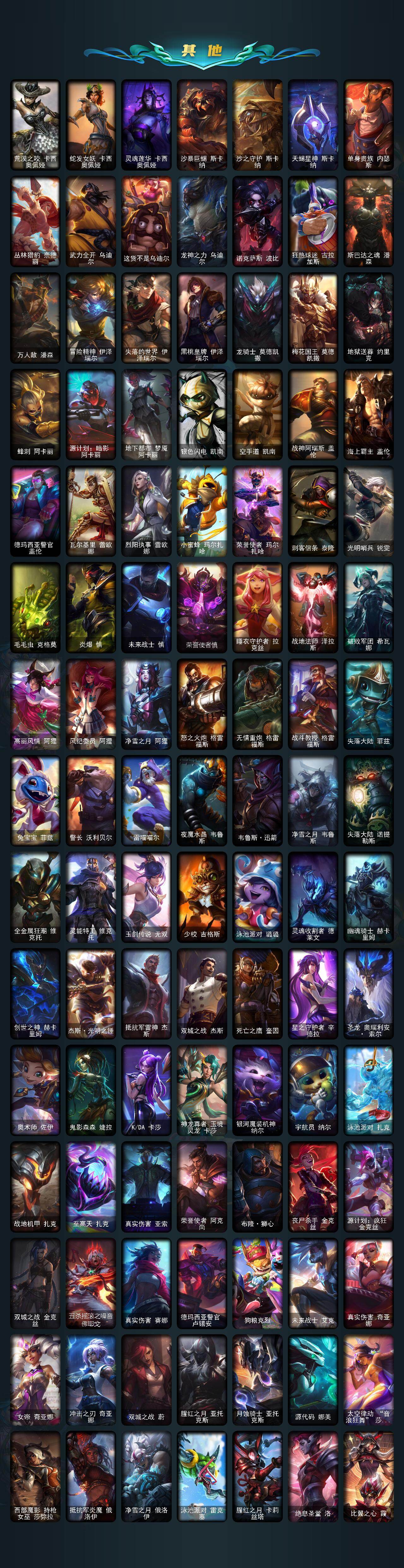 【神话皮肤】:十周年纪念安妮,神凰行者瑞羽圣凰艾尼维亚,灰烬骑士莫德凯撒,水晶掠夺者卡兹克,灰烬杀手塞拉斯,海克斯科技阿利斯塔,海克斯科技崔丝塔娜,海克斯科技嘉文四世,海克斯科技吉格斯,海克斯科技卡萨丁,海克斯科技拉莫斯,海克斯科技雷克顿,海克斯科技瑟庄妮,零之枪骑赫卡里姆,至臻征服者贾克斯,至臻真实伤