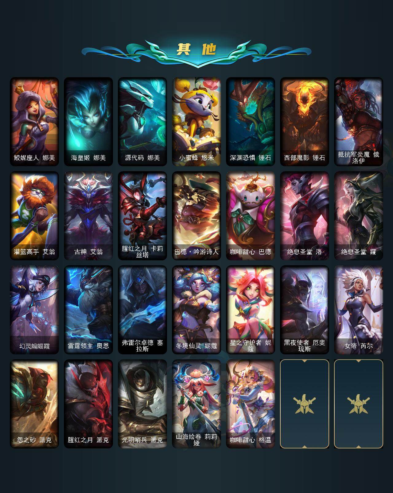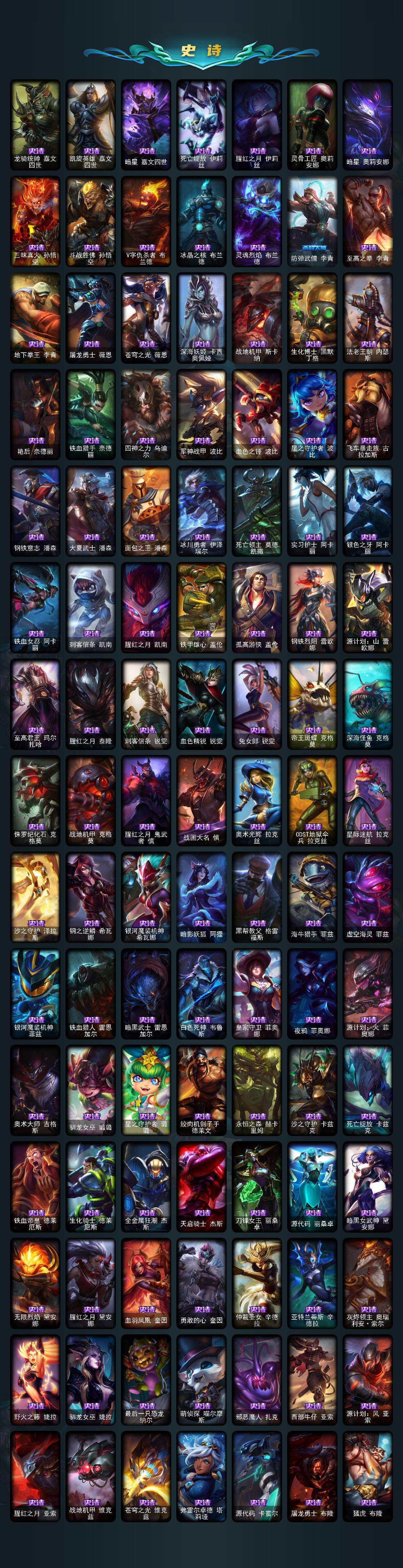 未定级段位-172英雄-901皮肤-262炫彩-5终极-30神话-165限定-76传说-209史诗