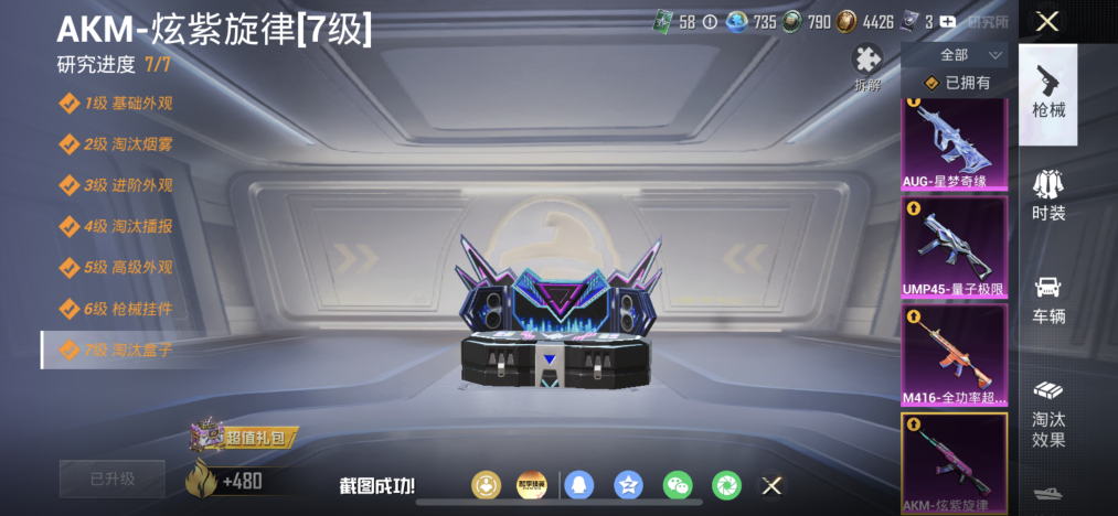 【AUG星梦奇缘小丑女赤蝎红眼罩11特效枪6粉装2载具】 苹果V区-66587热力值-137套装-205枪皮 【2载具】 星梦玉骢 星河领航(磐石银)【4稀有】 赤蝎幽灵 红眼罩 Mark.06蓝螳螂 8号机粉螳螂【6粉装】 狂魅哈莉(小丑女) 梦幻火箭 角色-冷漠罗丽 角色-金域紫灵 角色-智耀战神 角色-萨利娅【11特效枪】 AUG-星梦奇缘(3级) M416-全功率超战(7级) AKM-炫
