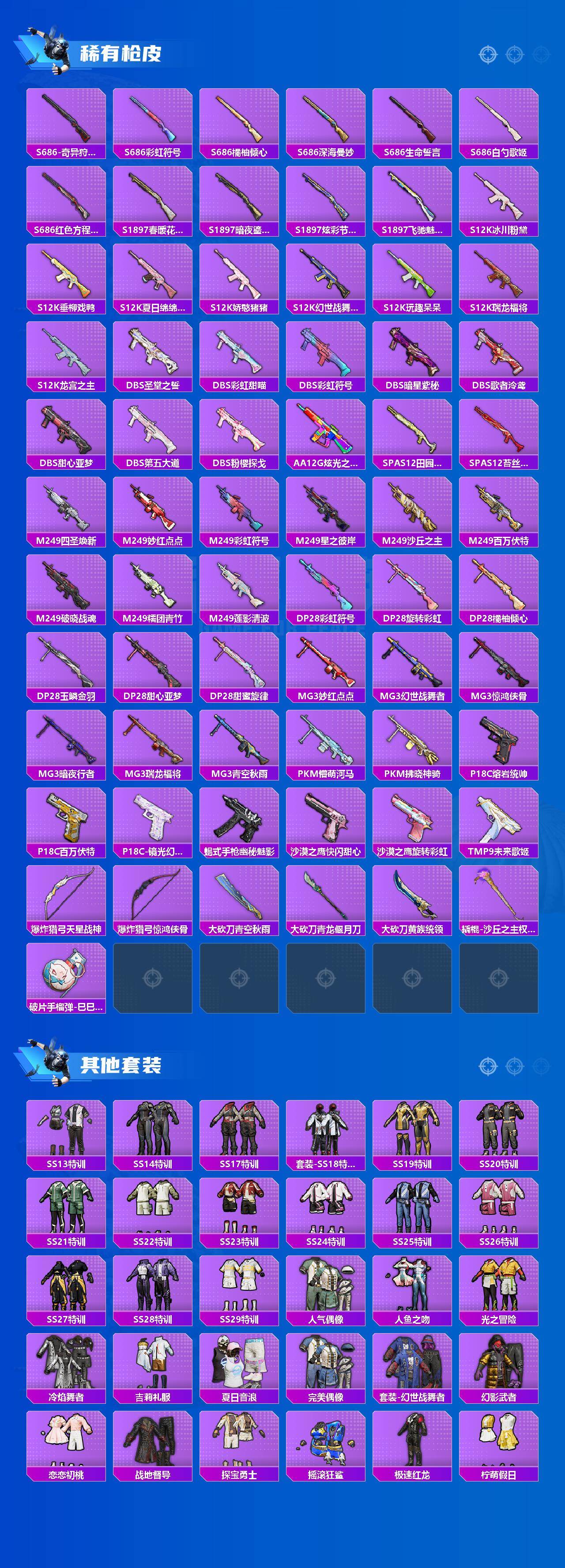 苹果 手Q-31粉装-11特效枪-5载具-8粉色飞行器-124320热力值-15王牌印记-264套装-314枪皮