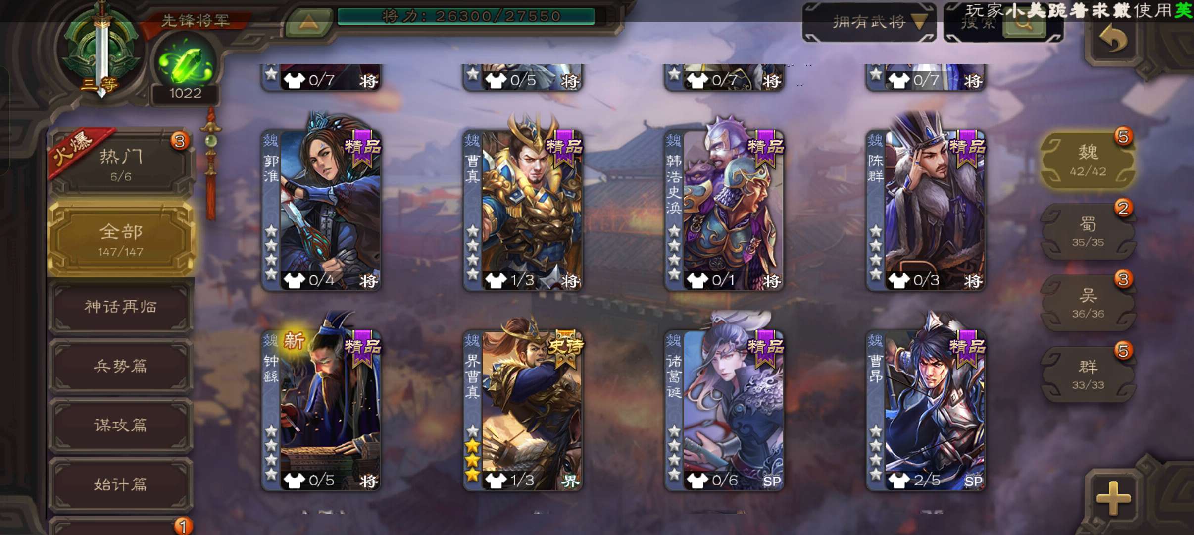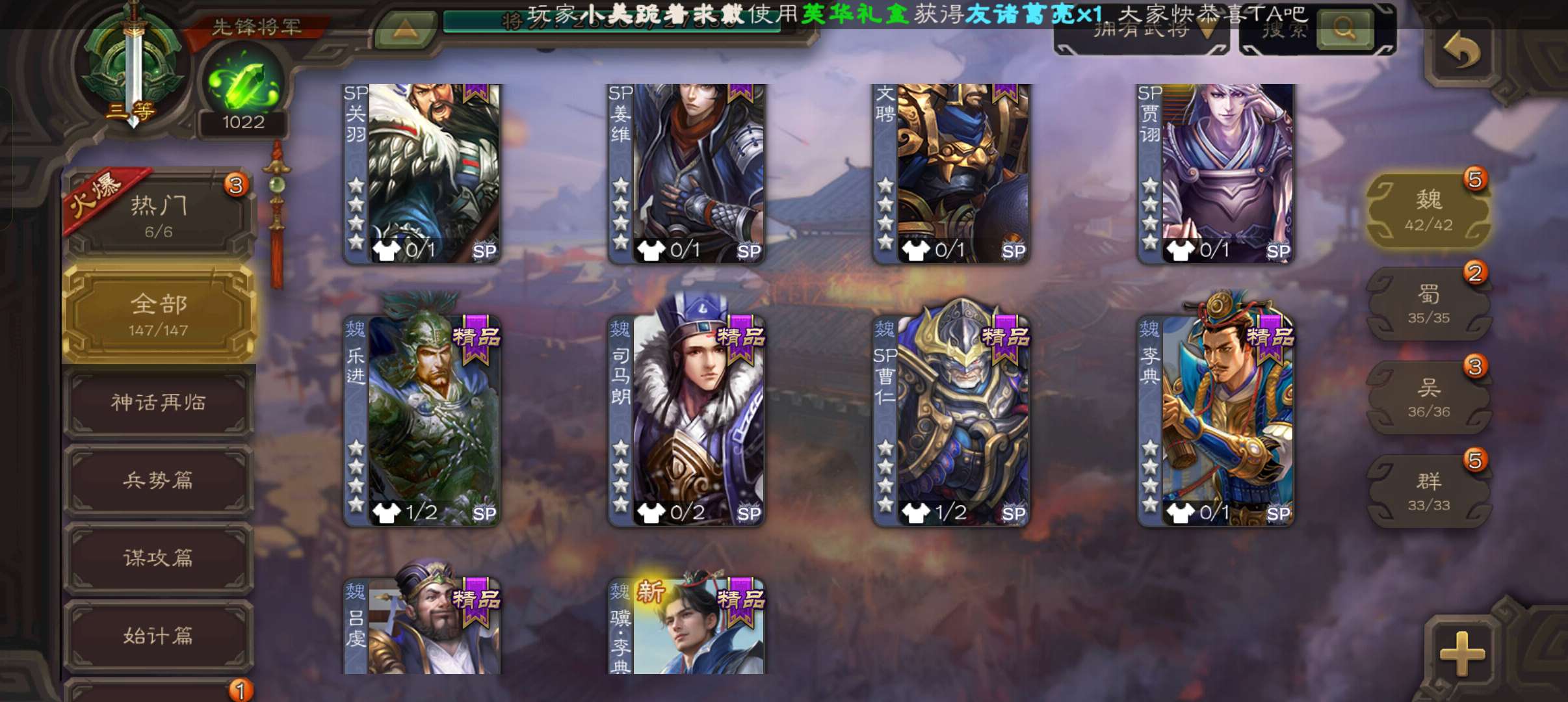 天工谋张辽,真动态界左慈界曹真双史诗先锋,动神周瑜势陈到甘夫人骥李典金皮界吕布147将,4万豆1千魂