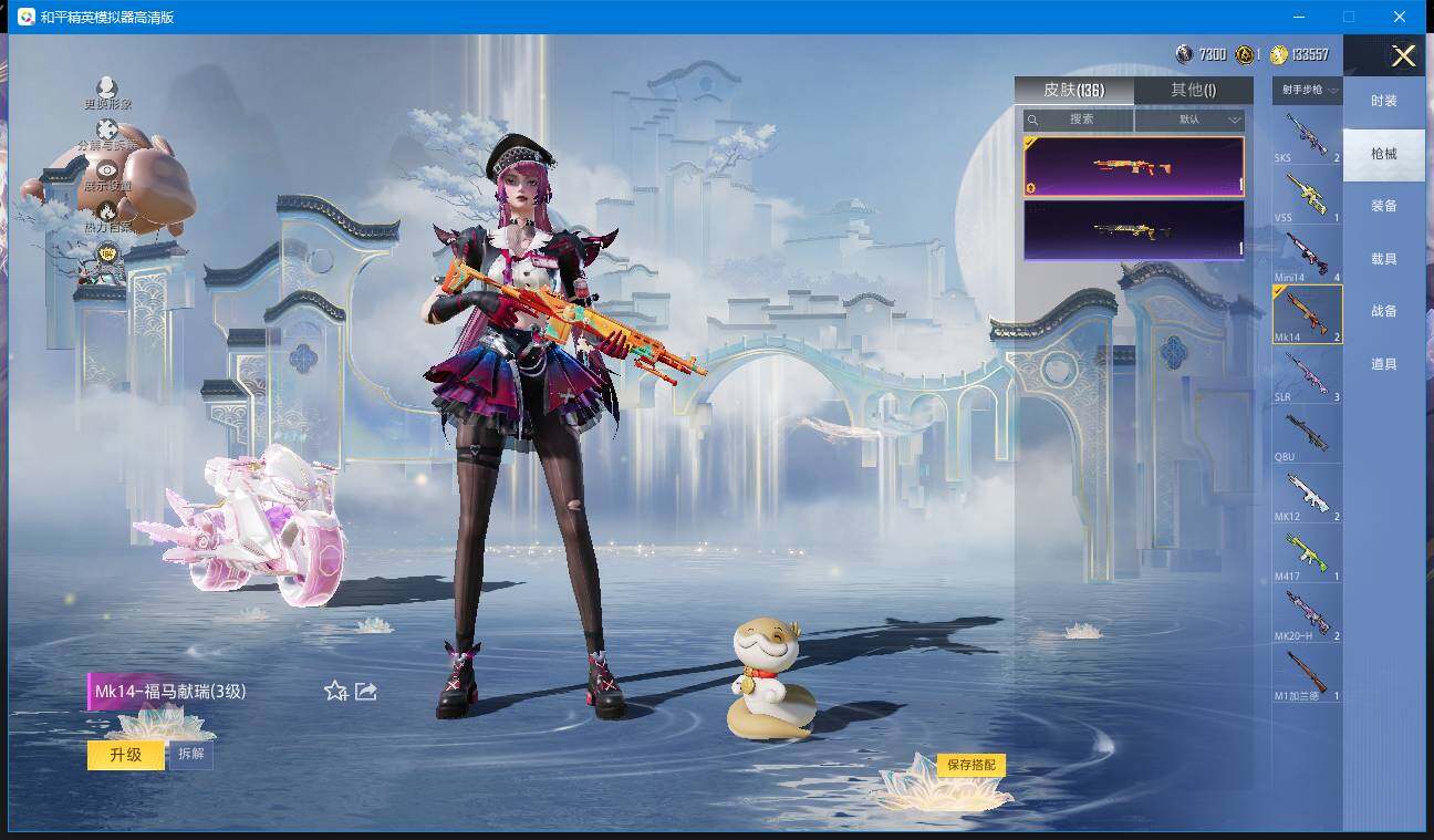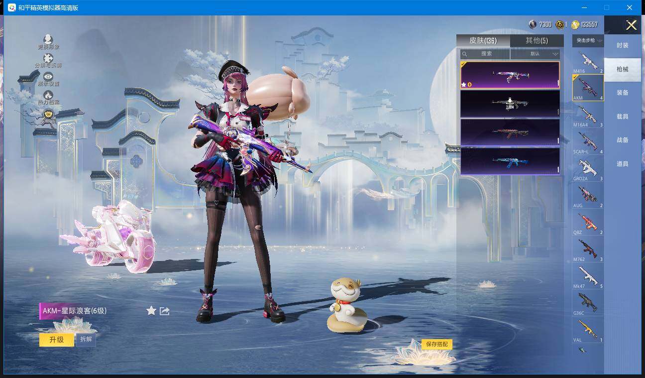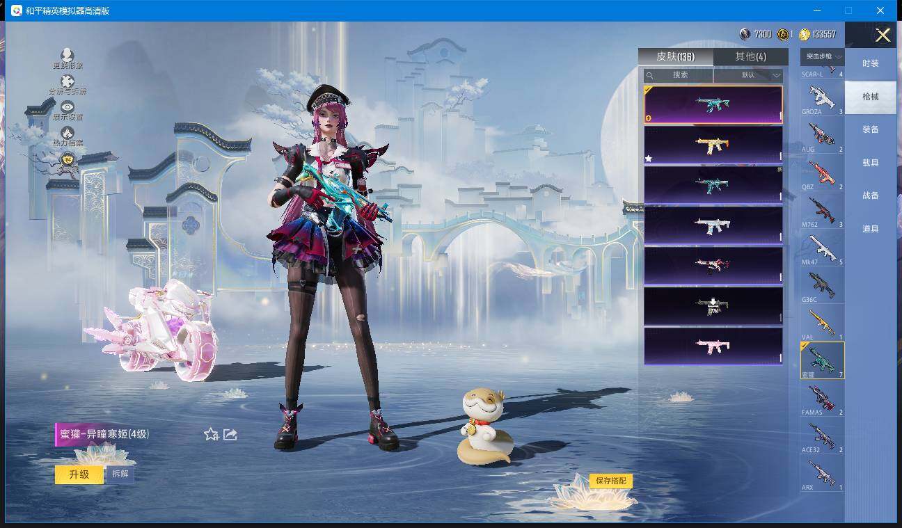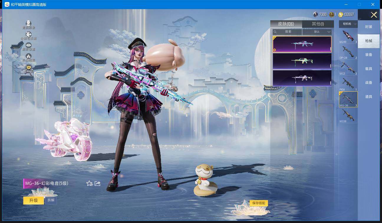 时装数: 366 载具数: 9 枪械数: 136 战备数: 96 热门装扮: 奇异狩猎者,梦幻火箭(新101),呆萌铁蟹,深海小丑鱼,迅捷狂鲨,好奇恐龙,洛天依,银红美神,幻彩电音,绯穹魔姬,异瞳寒姬,罪夜之冕,小舞,小舞·雪昙 载具: 僚机-萌兔起飞,玛莎拉蒂Quattroporte(夜幕蓝),宝马X6 M(曼岛绿),迈凯伦塞纳(冷萃蓝),迈凯伦F1车队 MCL38(木瓜橙),最终圣卫者摩托车