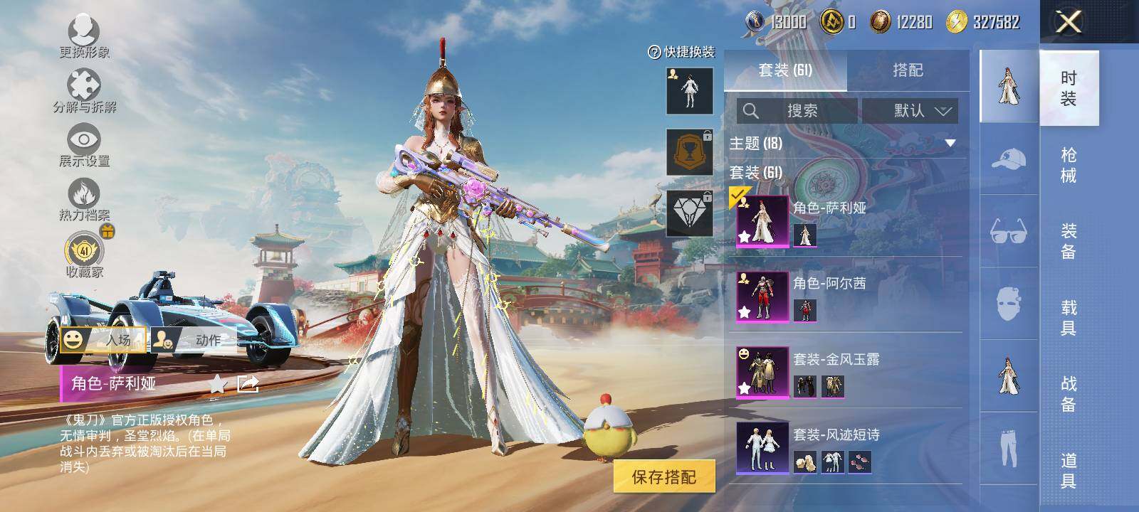 【粉色套装】:粉装-金风玉露,角色-阿尔茜,角色-萨利娅