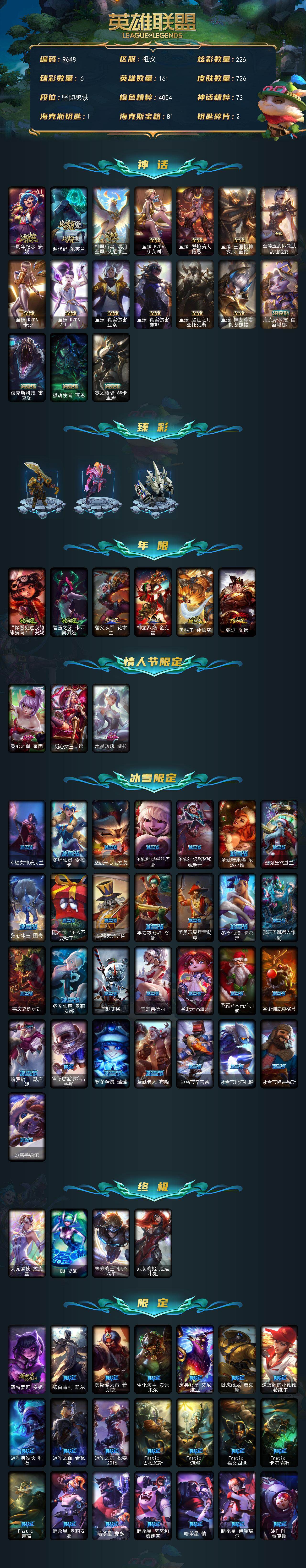 未定级段位-161英雄-726皮肤-226炫彩-4终极-17神话-126限定-65传说-186史诗