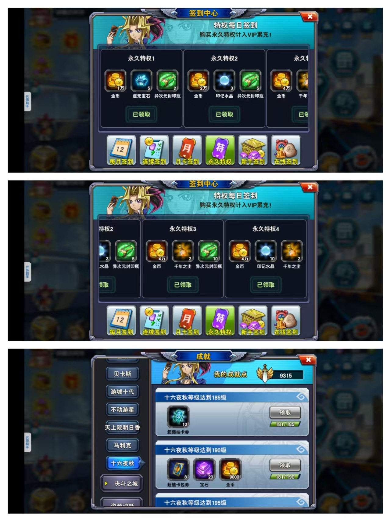金冠,四特权,金蛋巨神兵淡岛吕布冥神,贴贴(有大马小马武装),满档三国(有吕布曹操鲁肃),黑魔导,古渊白龙,海晶,大法师,2DD2凭依灵使万圣3共鸣海晶等印记,有1.3万古代,2531水晶,9千3成就