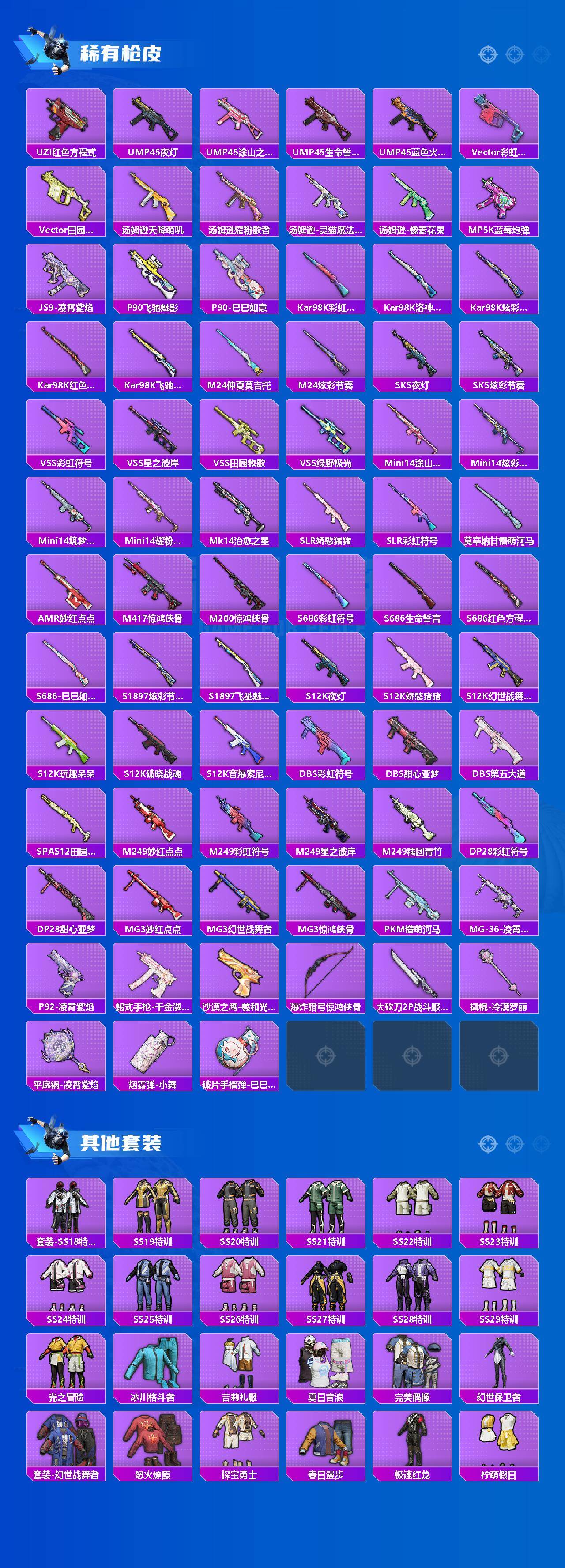 【粉色枪皮等级】:AKM-绿萝繁花(五级),M416-电玩时刻(五级),GROZA-旋转彩虹(七级),AUG-暖羊咩咩(五级),UMP45-量子极限(五级),