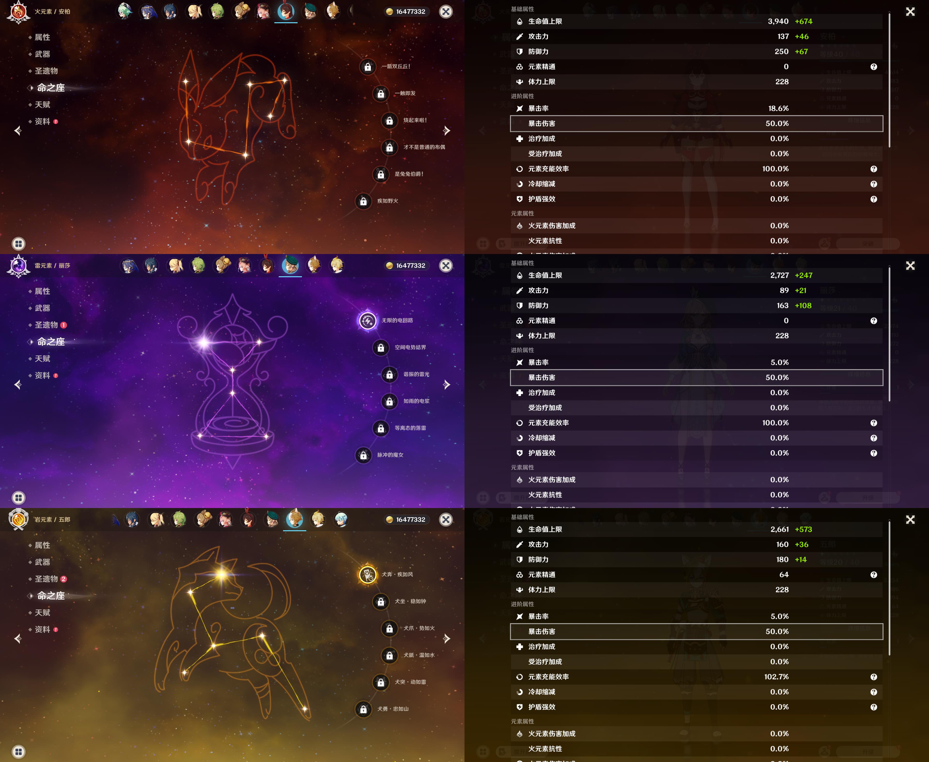 五星角色: