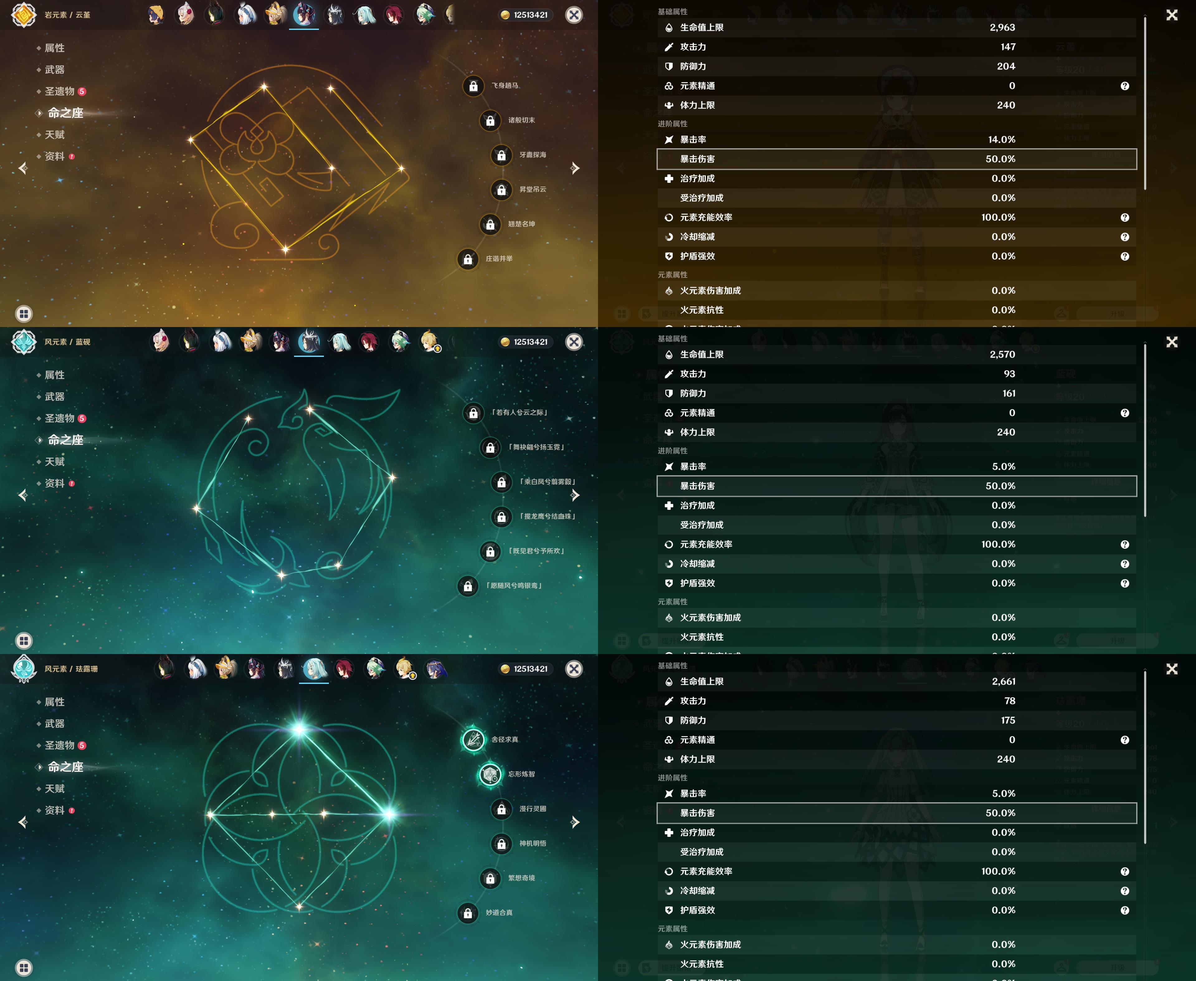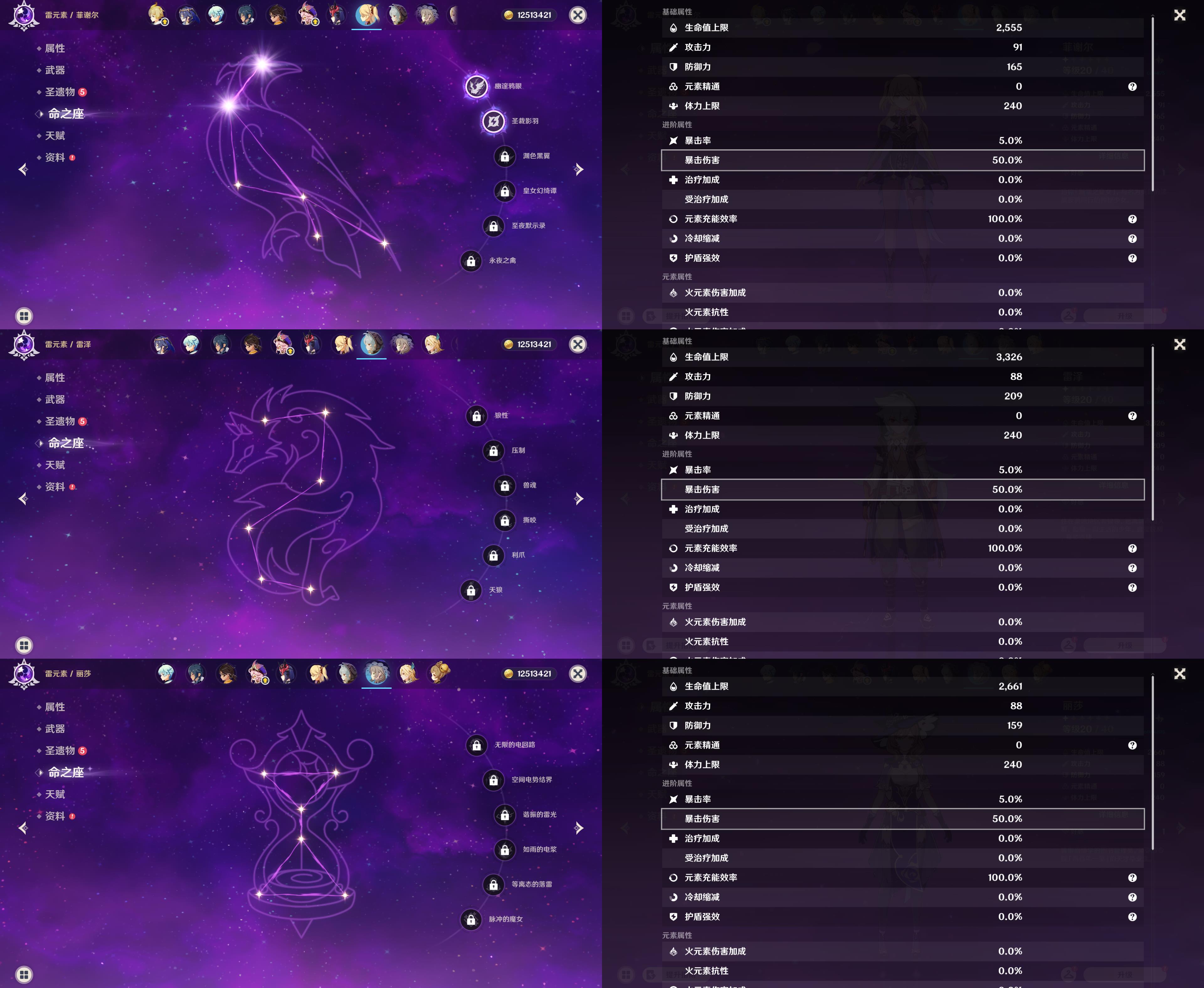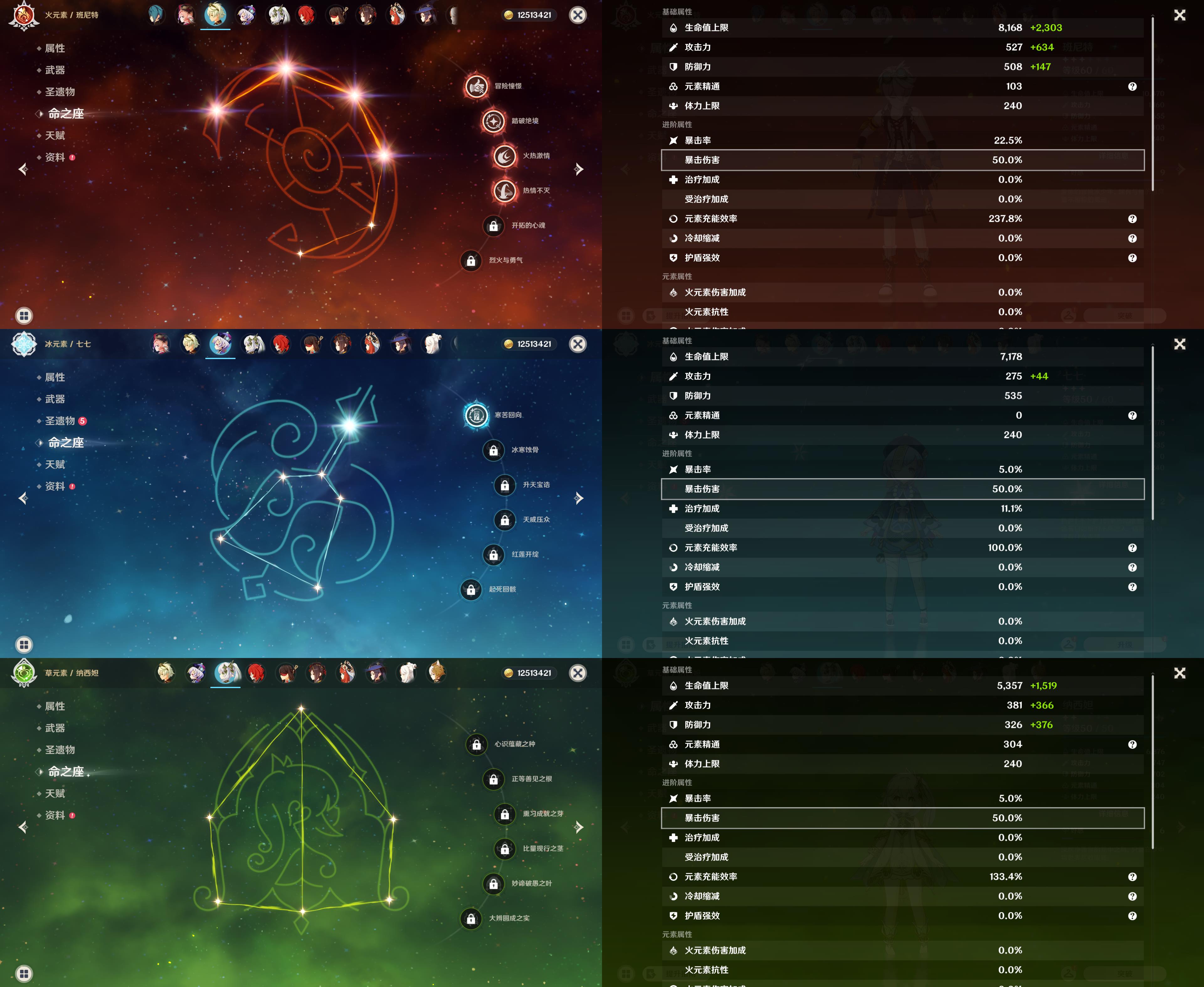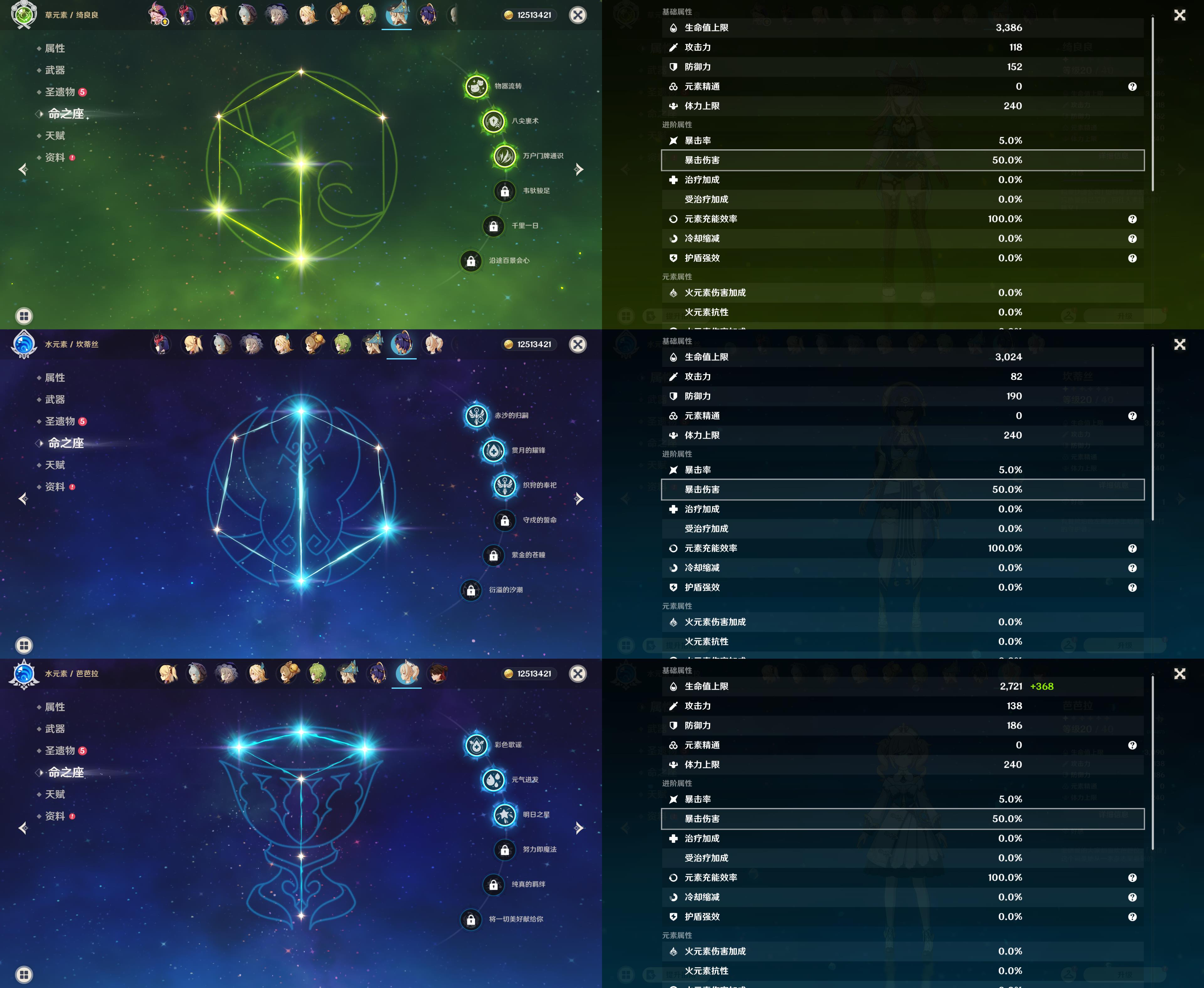 0命千织,0命纳西妲,0命妮露,1命提纳里,0命枫原万叶,1命胡桃,0命温迪,1命刻晴,1命七七,0命莫娜,0命迪卢克,0命玛拉妮,精1天空之卷