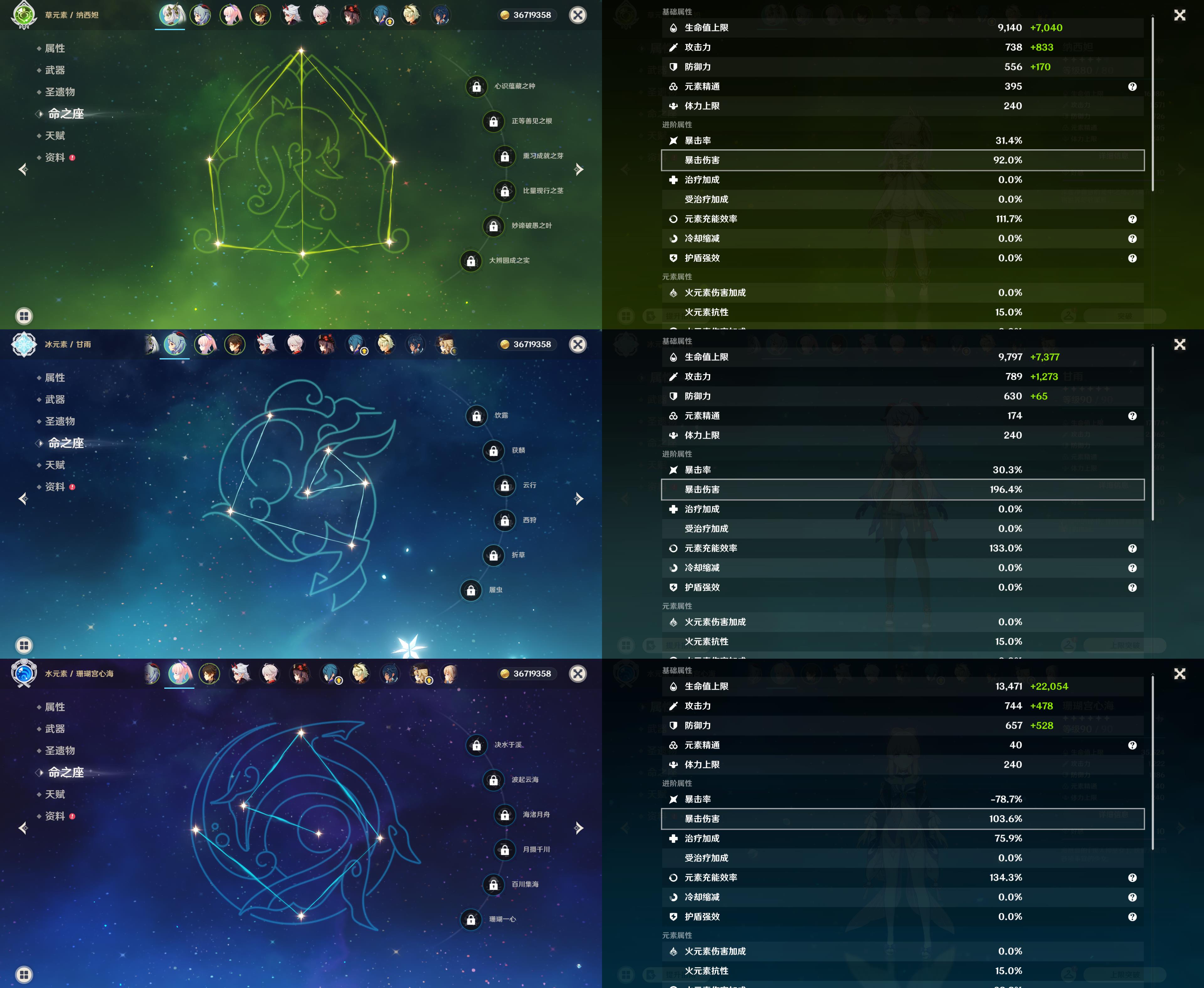 【YSX1906】56级/31黄/女主/19个五星角色/8个五星武器/0命纳西