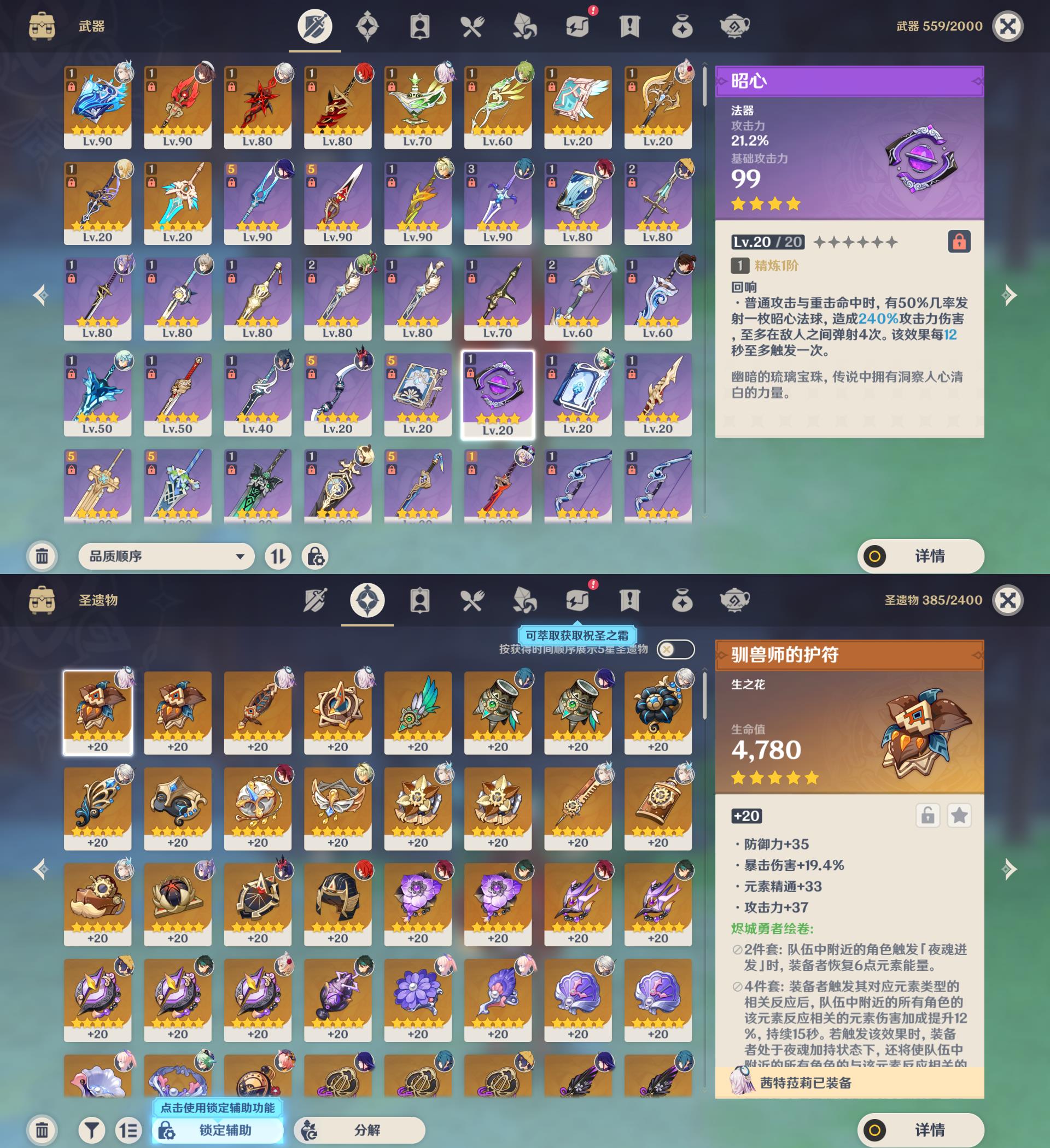 【YSYT1112】58级/28黄/女主/14个五星角色/10个五星武器/0命
