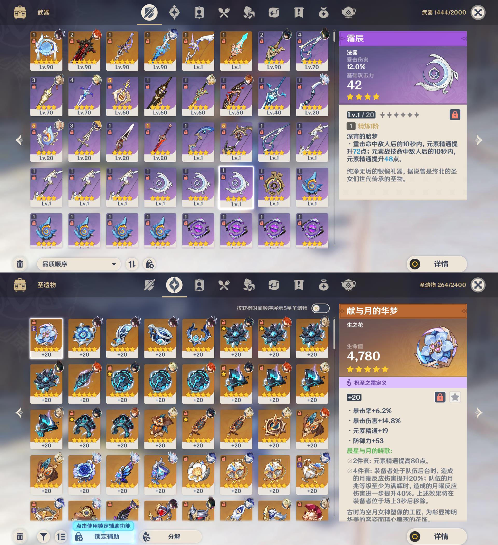 【YSX1844】57级/28黄/女主/12个五星角色/6个五星武器/满命芙宁娜/0命哥伦比娅/0命玛薇卡/0命基尼奇/0命希格雯/0命希诺宁/1命七七/0命琴/0命达达利亚/0命提纳里/1命迪希雅/1命迪卢克/精1帷间夜曲/精2狼的末路/精1赦罪/精1静水流涌之辉/精1阿莫斯之弓/精1天空之脊