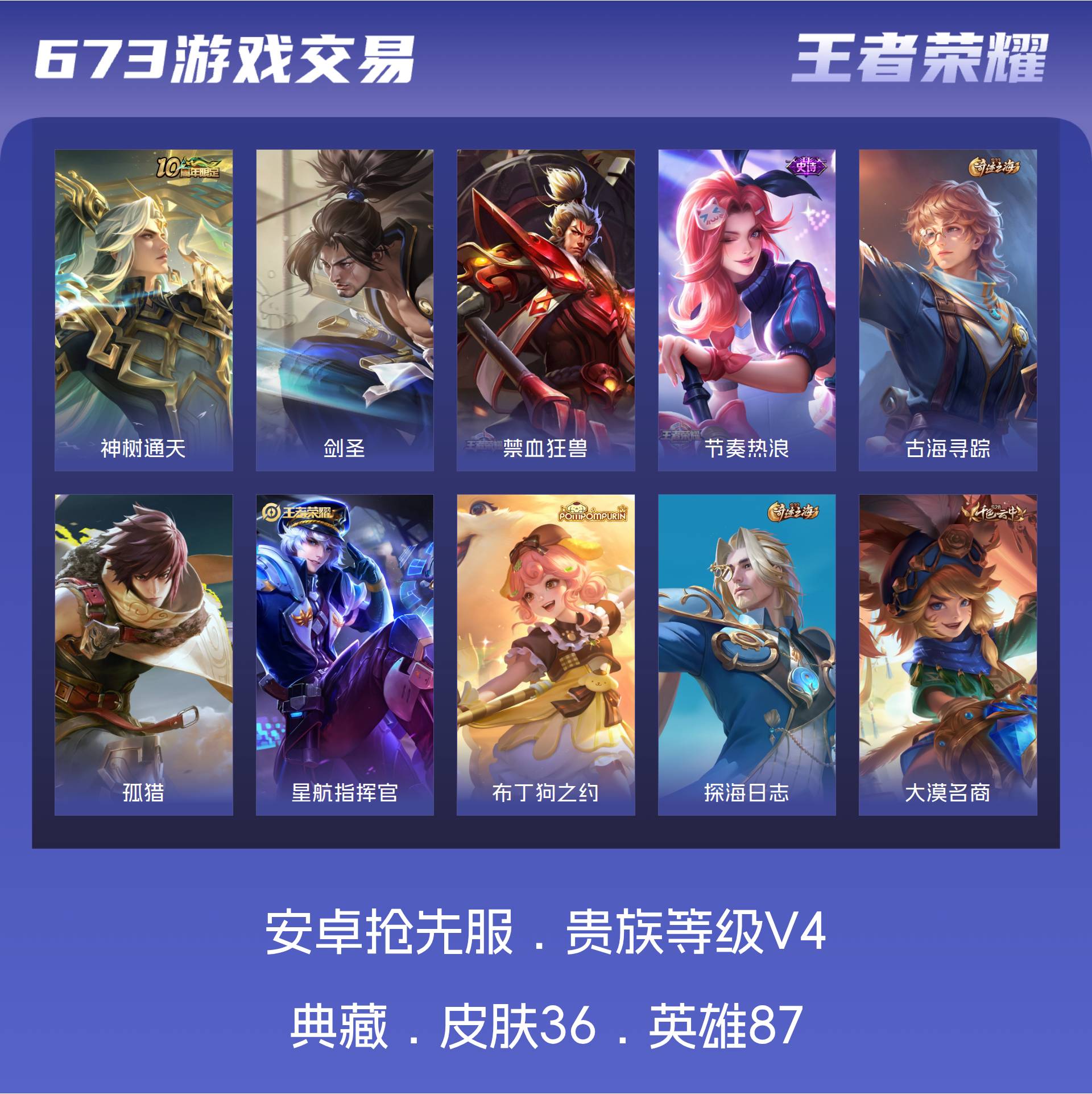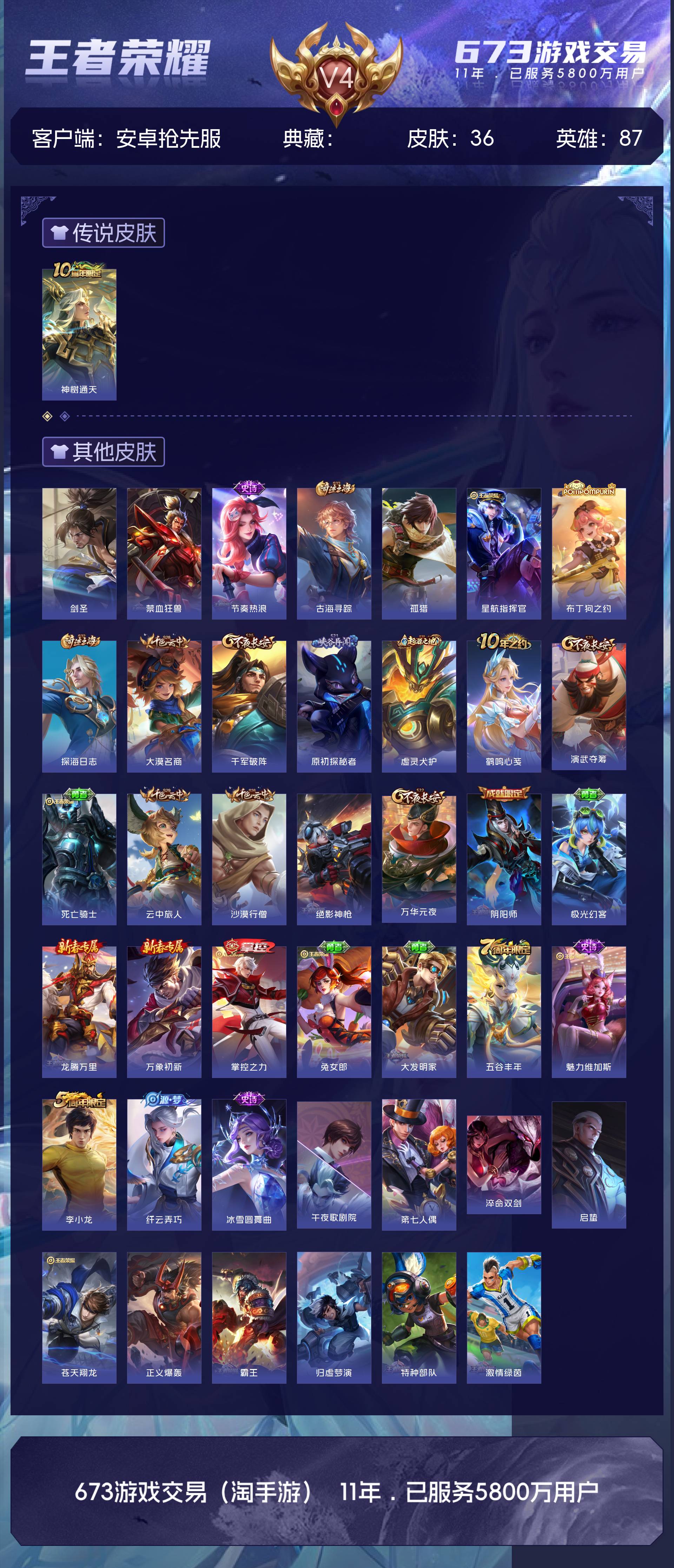 V4 皮肤36 英雄87 尊贵铂金 传说1