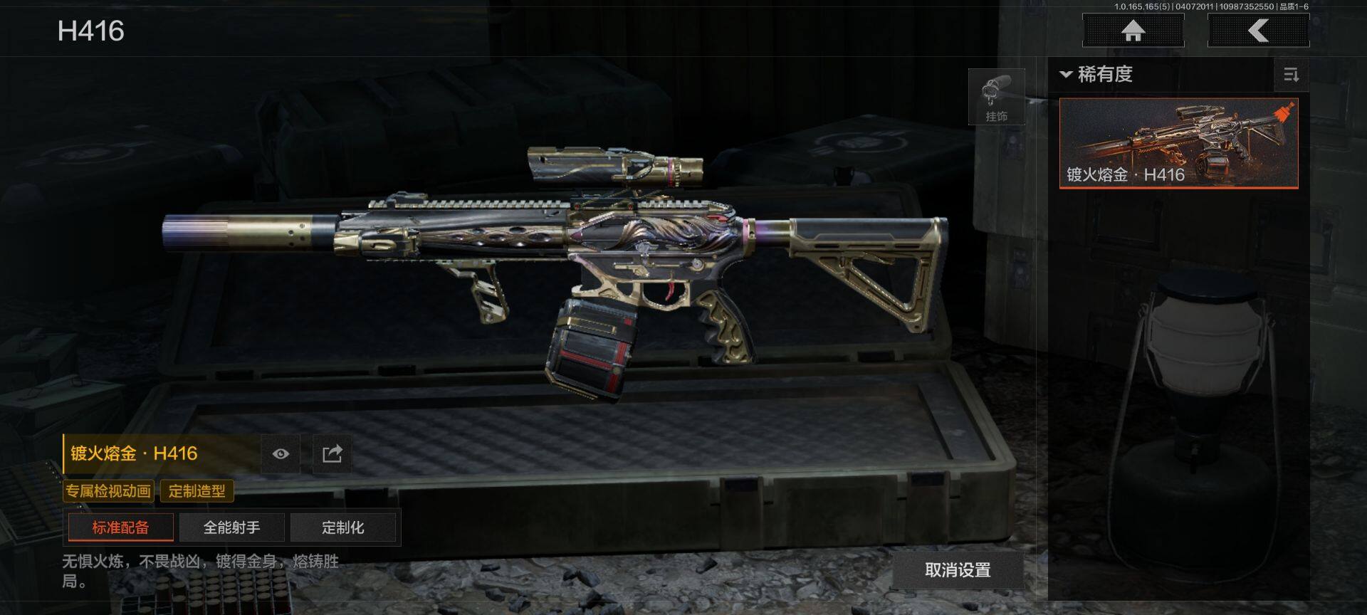 【AQQH1156】段位:大师/仓库价值(百万):100/工兵铲/镀火熔金H416