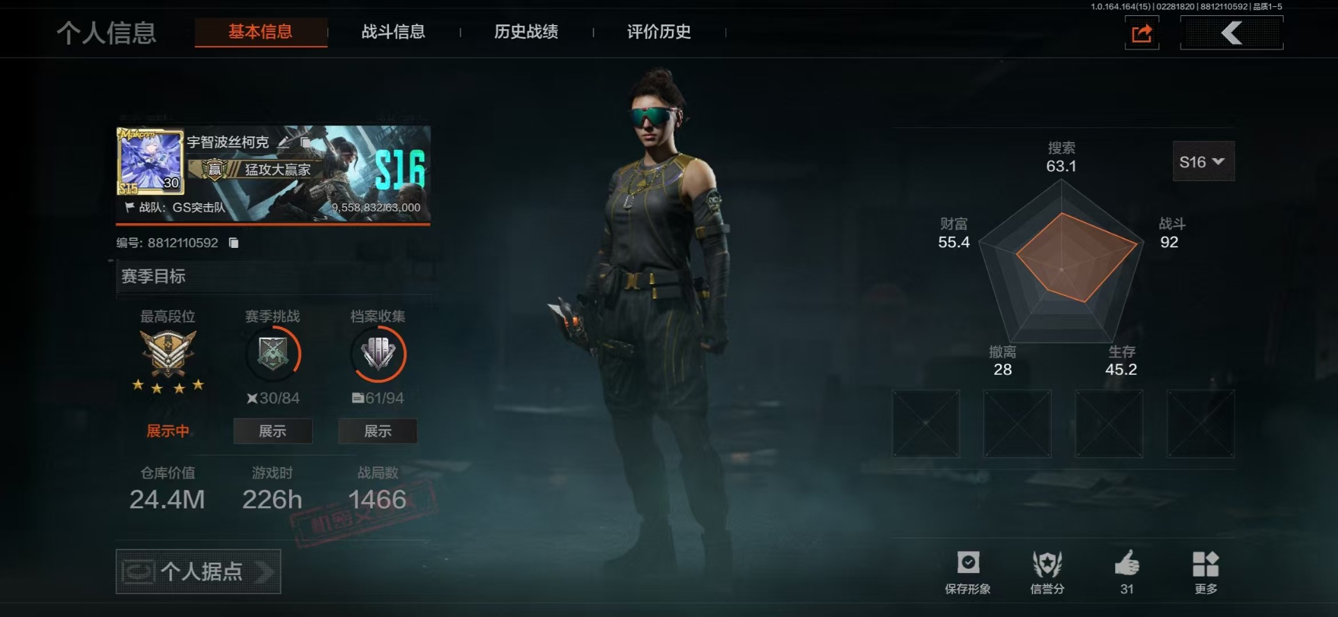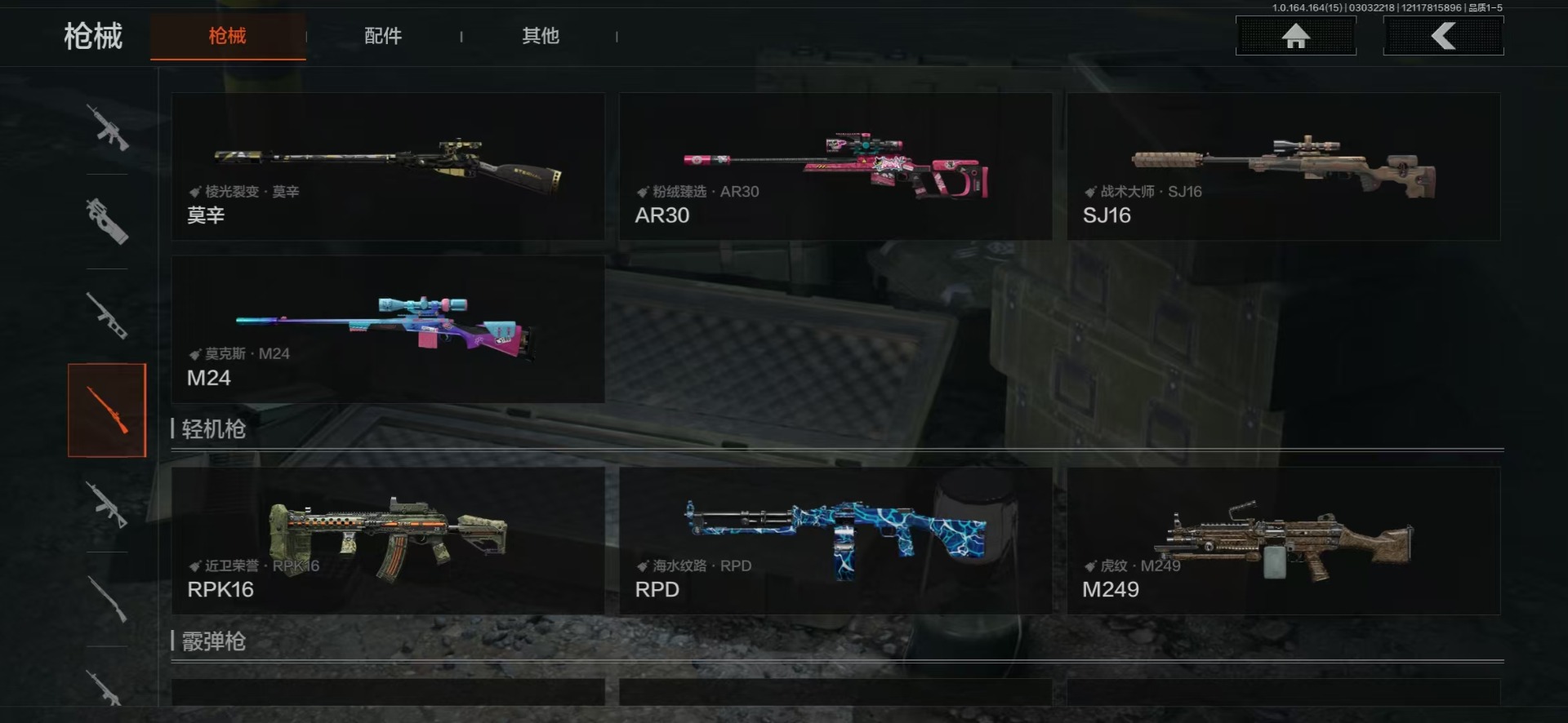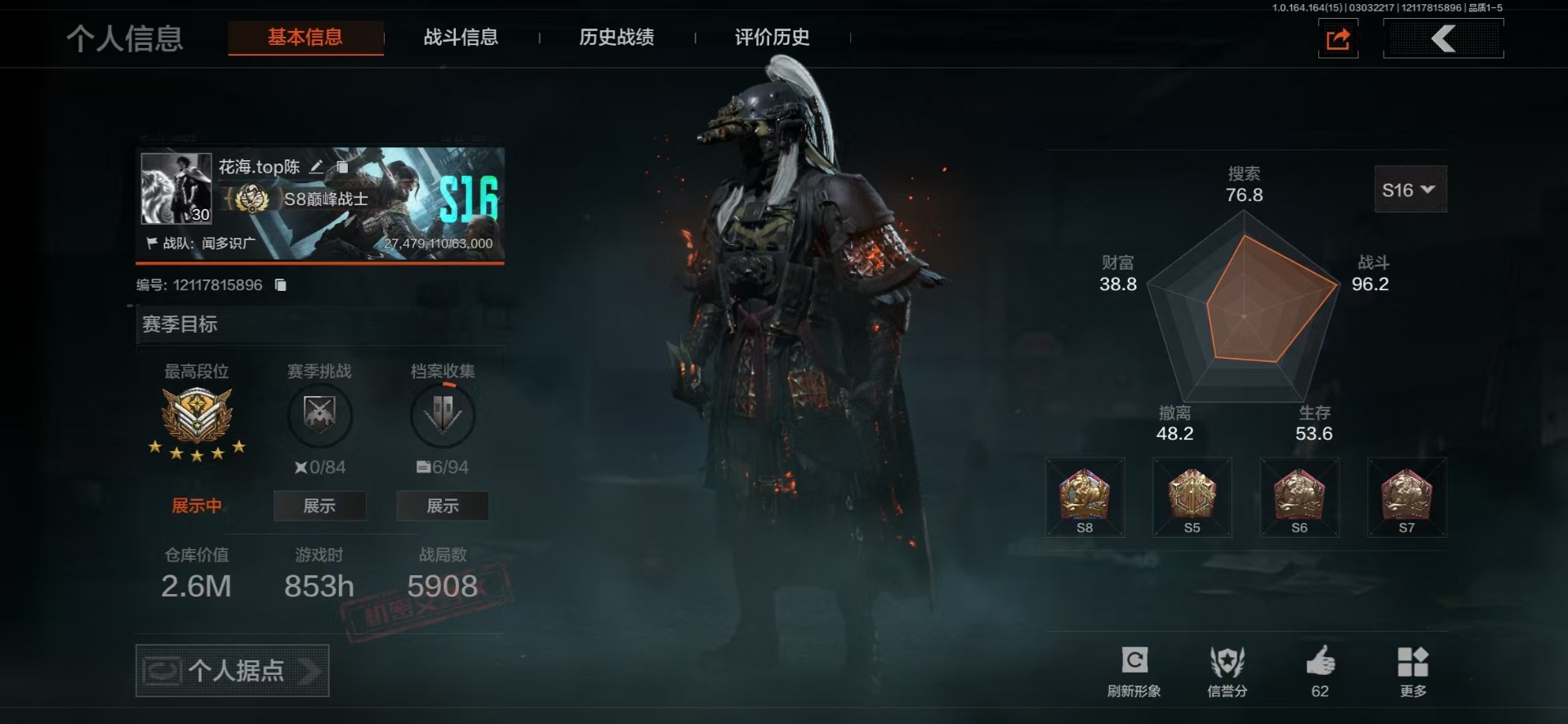 [17390741]实名: 可修改 柯恩币数量: 9743 仓库价值: 24 金枪数量: 12 角色装扮(金): 脉冲·马克西姆,金红闪电套装 近战武器: 霜狼生存刀,胜利军刀,来战·开山刀,赤火炉心 金色枪皮: 战术大师·AK102,棱光裂变·QBU191,告丧夜曲·AUG,利齿风暴·MPX,旧王圣谕·VSS,战术大师·AEK,包络战术·AKM,近卫荣誉·RPK16,地脉深处·FAL,镀火熔金
