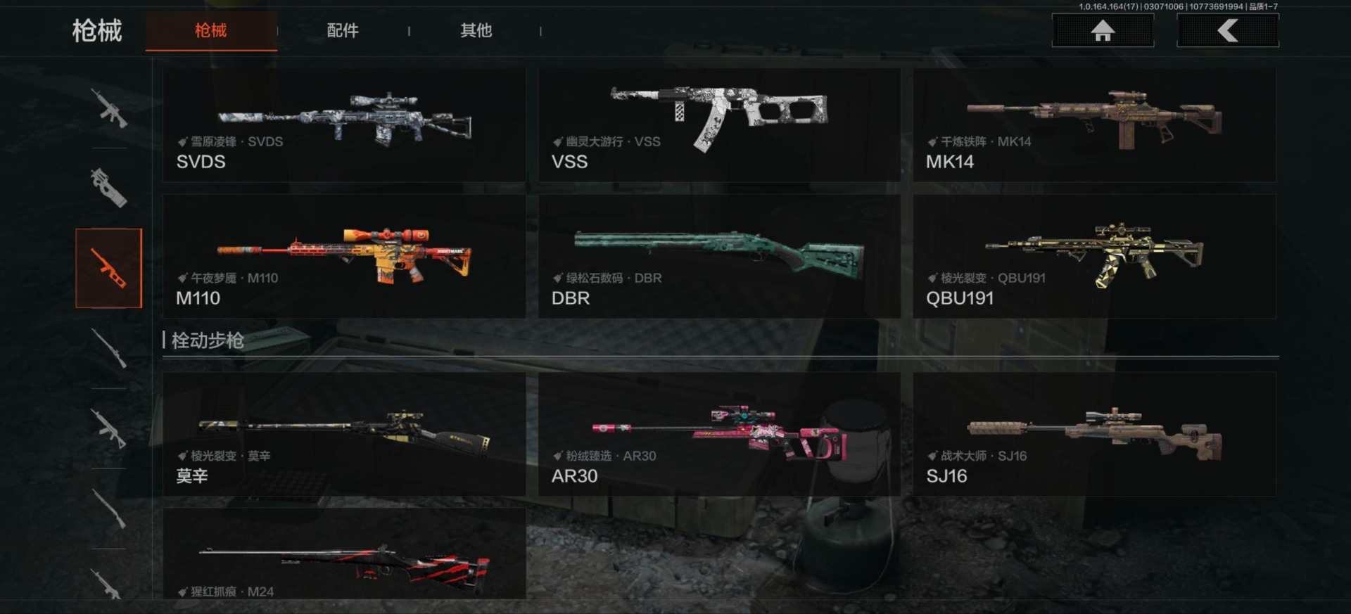 [17485455]实名: 可修改 柯恩币数量: 264603 仓库价值: 31 金枪数量: 7 角色装扮(金): 金红闪电套装 近战武器: 来战·开山刀,工兵铲,赢家匕首,热能武器·补牢,赤火炉心 金色枪皮: 旗帜·AEK,棱光裂变·QBU191,伦琴幻影·FAL,旧王圣谕·QBZ191,包络战术·AKM,镀火熔金·H416,千炼铁阵·MK14 紫色枪皮: 午夜梦魇·M110,雪原凌锋·SVD