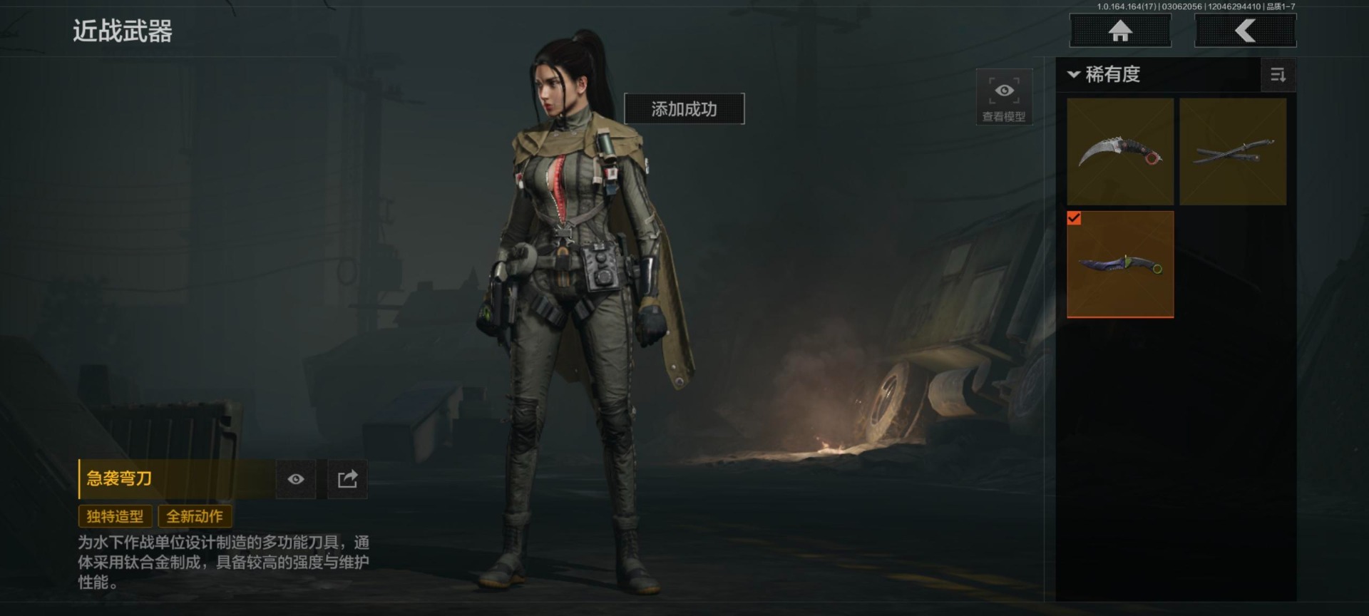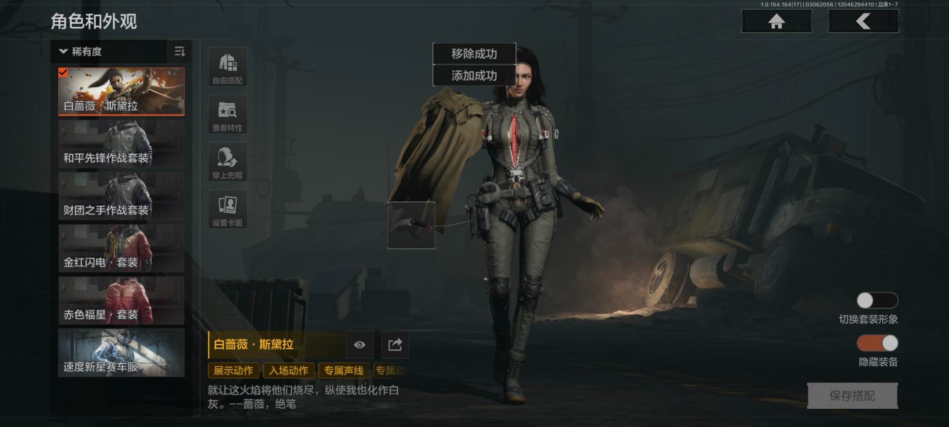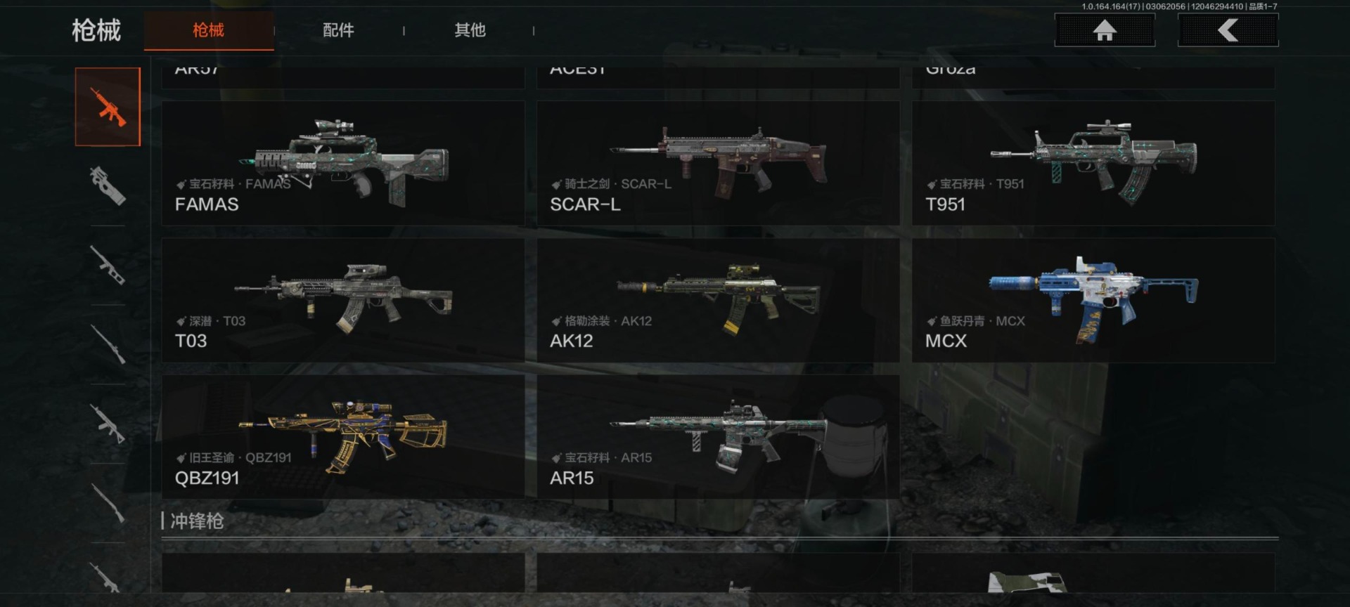 实名: 可修改 柯恩币数量: 102370 仓库价值: 10 金枪数量: 4 角色装扮(金): 白蔷薇·斯黛拉,金红闪电套装 近战武器: 急袭弯刀,明刀·绣春,下弦月 金色枪皮: 告丧夜曲·AUG,旧王圣谕·QBZ191,赤帽要塞·AR57,镀火熔金·H416 紫色枪皮: 深潜·F2000,深潜·T03,无声暗月·MP5,无声暗月·AX50,骑士之剑·SJ16,猩红羽翼·VSS,鱼跃丹青·MCX