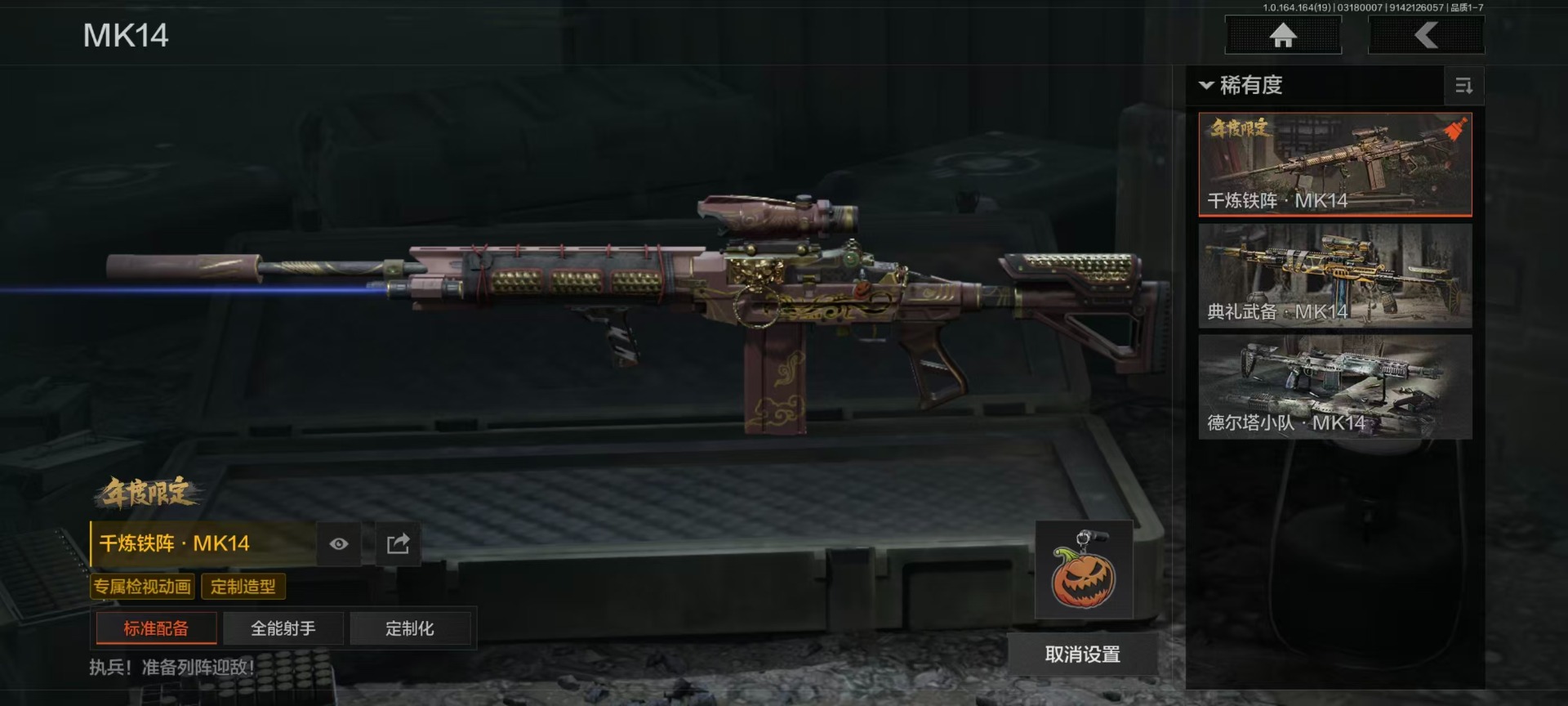 [17813995]实名: 可修改 柯恩币数量: 7551 仓库价值: 55 金枪数量: 8 角色装扮(金): 噤声者吉利服 近战武器: 霜狼生存刀,工兵铲,热能武器·补牢,赤火炉心 金色枪皮: 战术大师·AK102,骑士之剑·VSS,旗帜·AEK,浮鳞影青·QBZ192,伦琴幻影·FAL,旧王圣谕·VSS,百锻铁骑·AEK,千炼铁阵·MK14 紫色枪皮: 坚守·AKM,雪原凌锋·SVDS,和平
