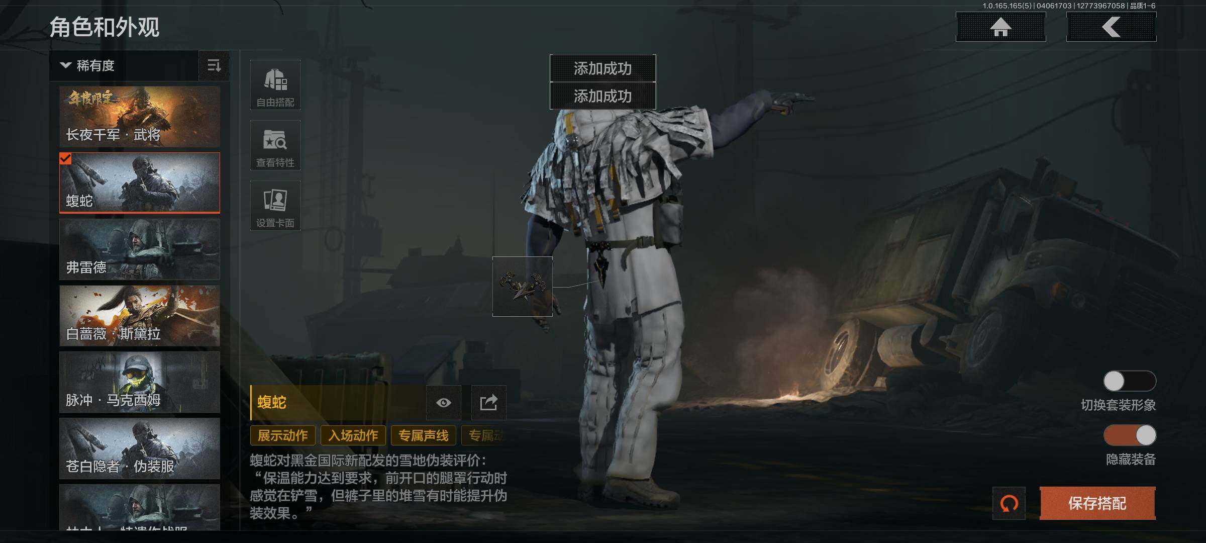 【AQZG2083】等级:30/段位:专家/仓库价值(百万):48/赤火炉心/幽燕钛玄/热能武器补牢/下弦月/寒牙手刺/工兵铲/来战开山刀/白蔷薇斯黛拉/蝮蛇/弗雷德/脉冲马克西姆/林中人特遣作战服/苍白隐者伪装服/林中人FAL/镀火熔金H416/赤帽要塞AR57/告丧夜曲AR57/战术大师AEK/百锻铁骑AEK/战术大师AN94/旗帜AEK/玉擎天工AN94/玉擎天工MP5/利齿风暴MPX/长