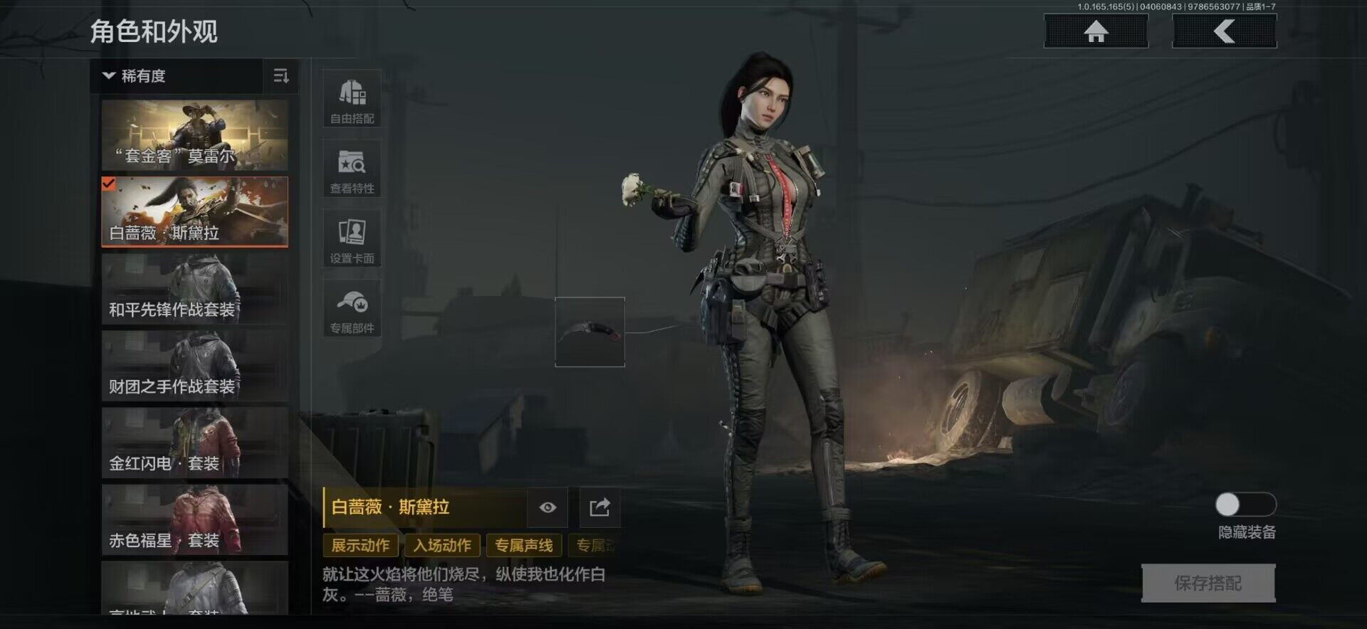 【AQZ401】等级:30/段位:精英/仓库价值(百万):281833235/下弦月/来战开山刀/套金客莫雷尔/白蔷薇斯黛拉/战术大师AN94/告丧夜曲AUG/利齿风暴MPX/镀火熔金H416/旧王圣谕QBZ191/旧王圣谕VSS/近卫荣誉RPK16/竞技FAL/地脉深处ACE31/伦琴幻影FAL