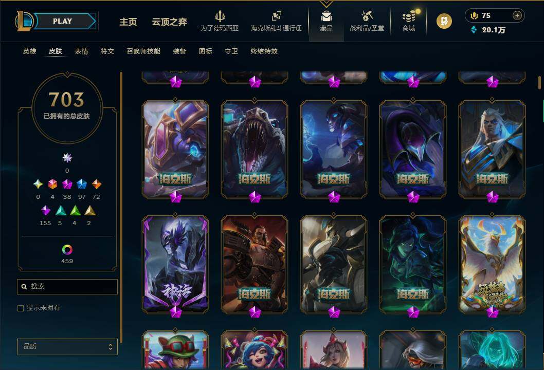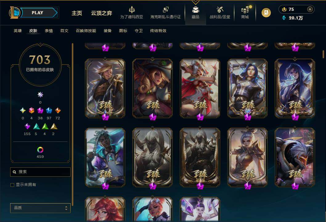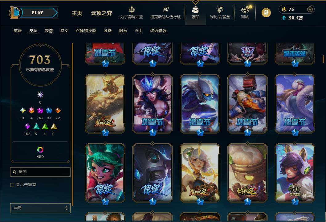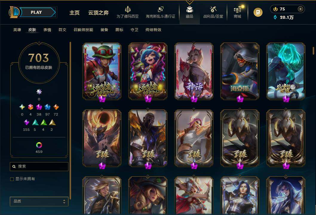 【LSA1455】172英雄/703皮肤/4终极/38神话/98限定/21臻彩