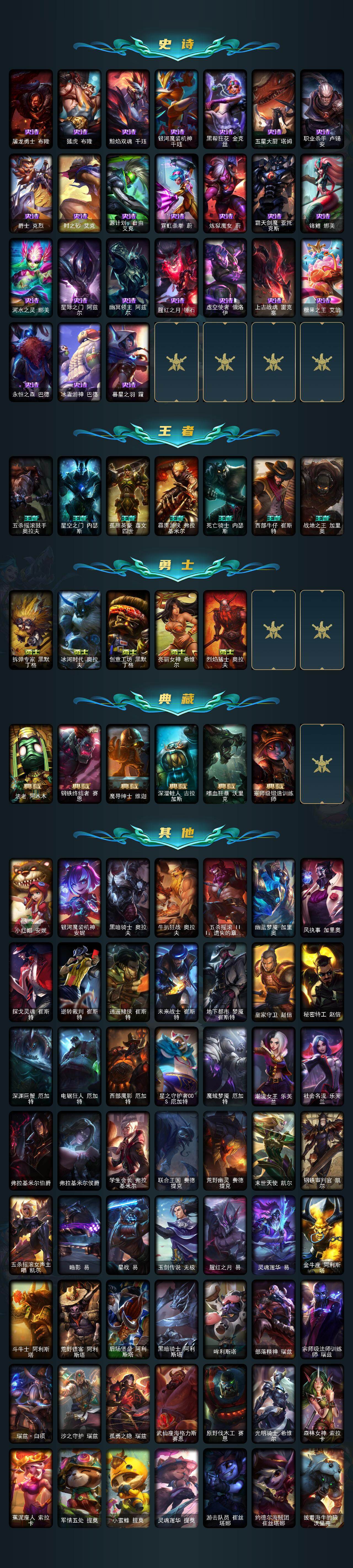 【LOLF2969】172英雄/823皮肤/7终极/28神话/117限定/13