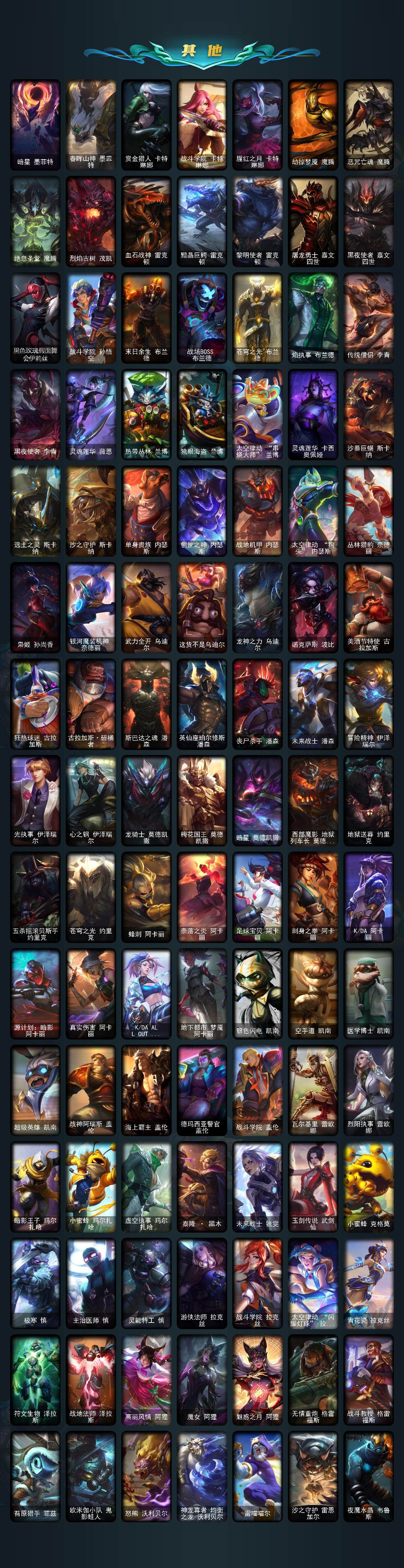 【神话皮肤】:十周年纪念安妮,源代码乐芙兰,十五周年纪念希维尔,暗星科加斯,神凰行者瑞羽圣凰艾尼维亚,黎明使者卡尔玛,灰烬骑士莫德凯撒,水晶巫灵泽拉斯,水晶掠夺者卡兹克