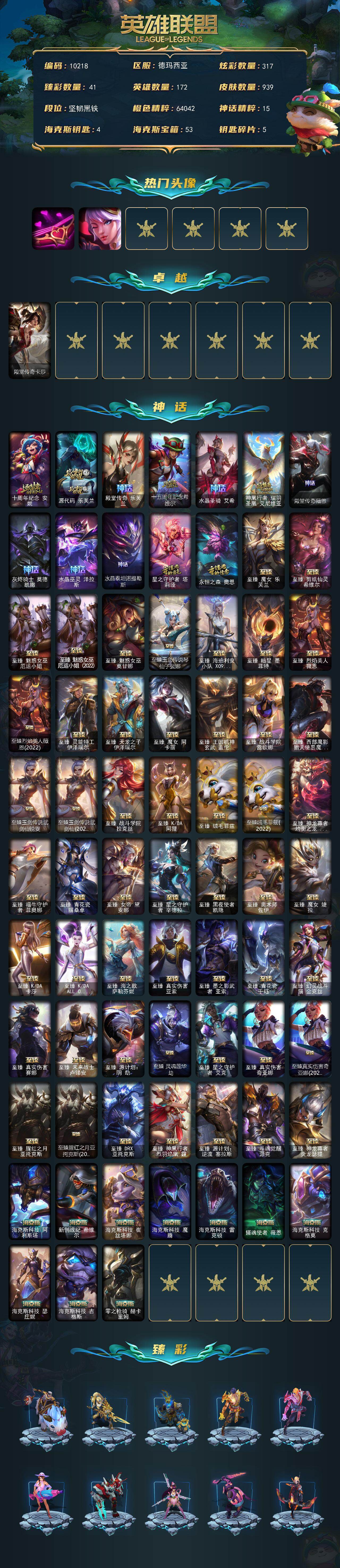 单双未定级段位-172英雄-939皮肤-317炫彩-2终极-73神话-134限