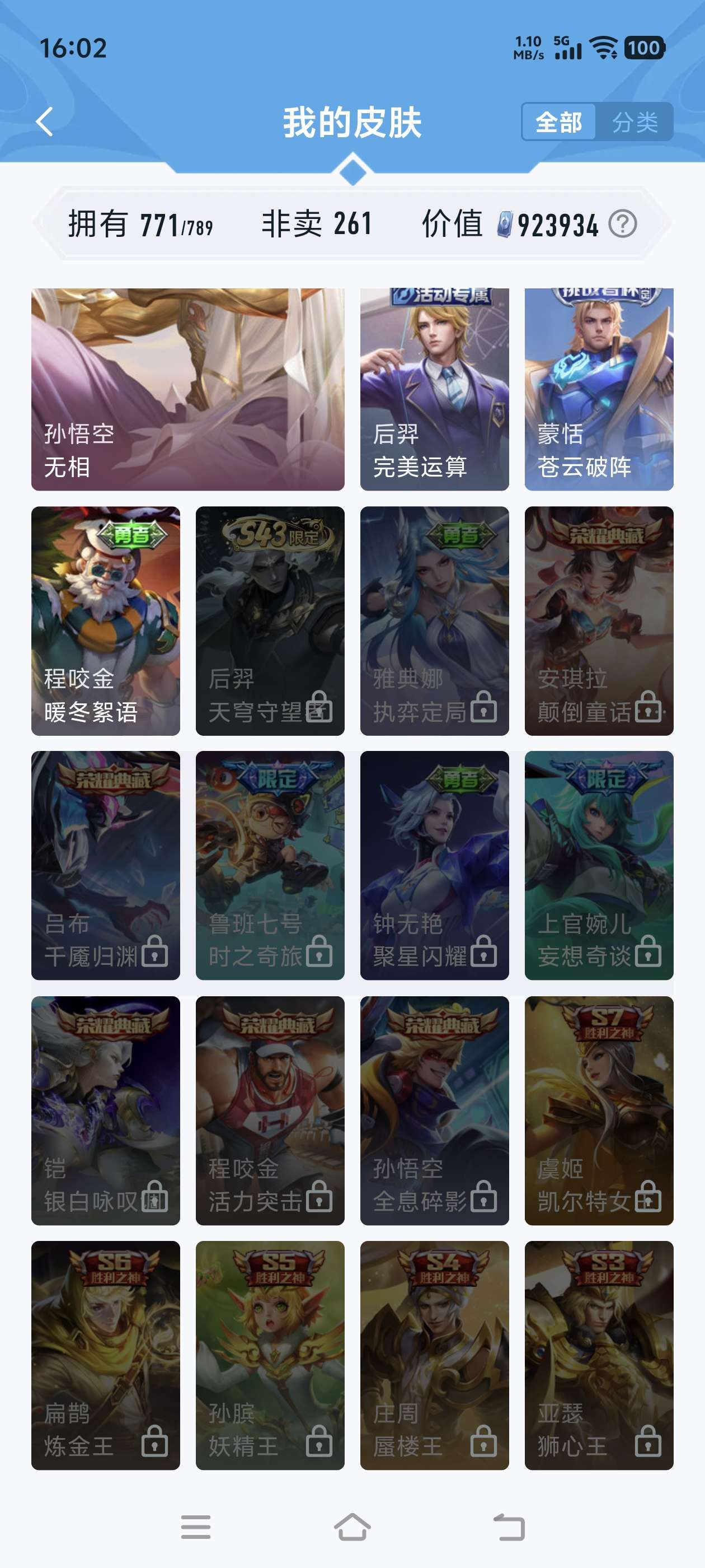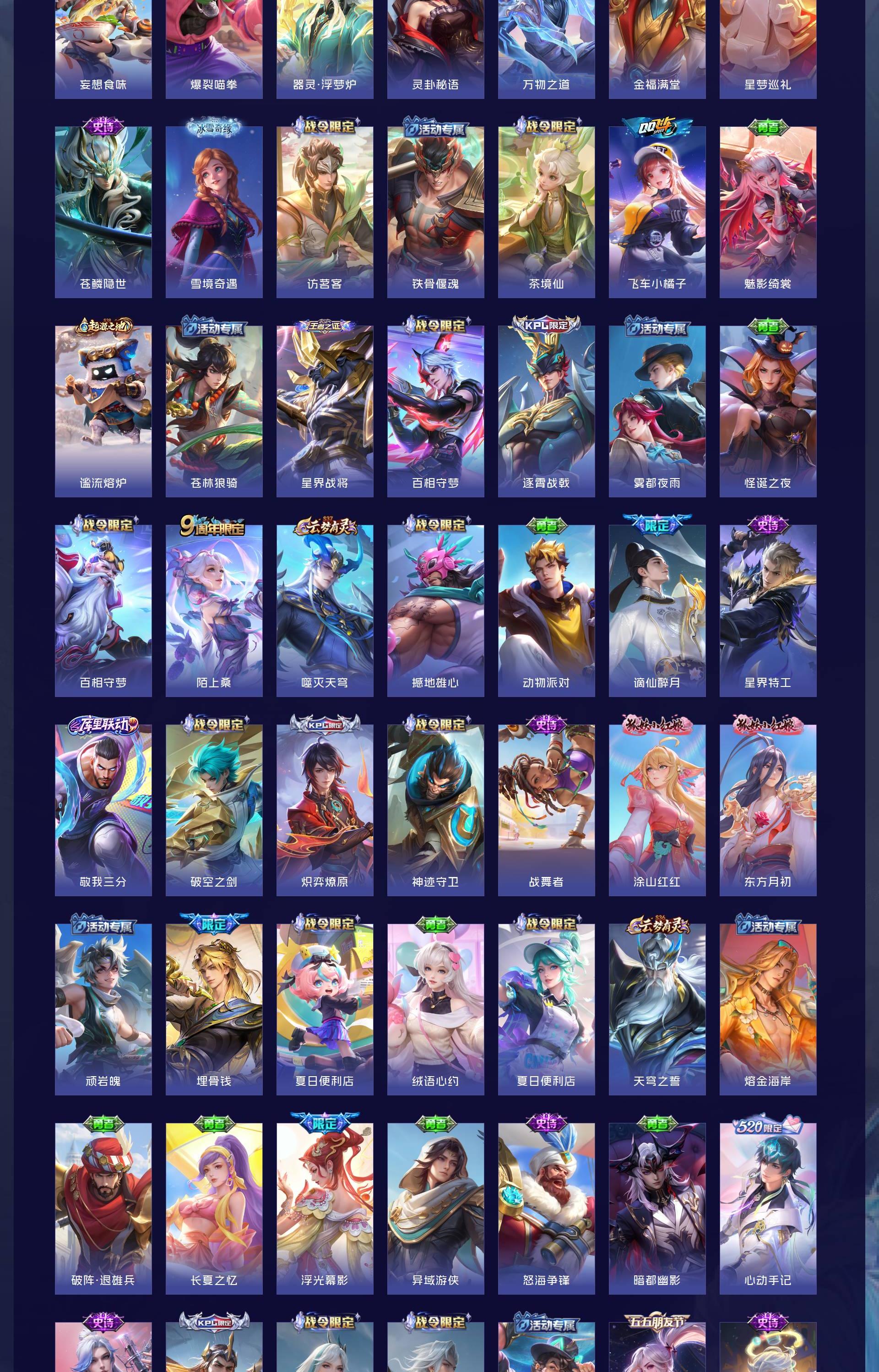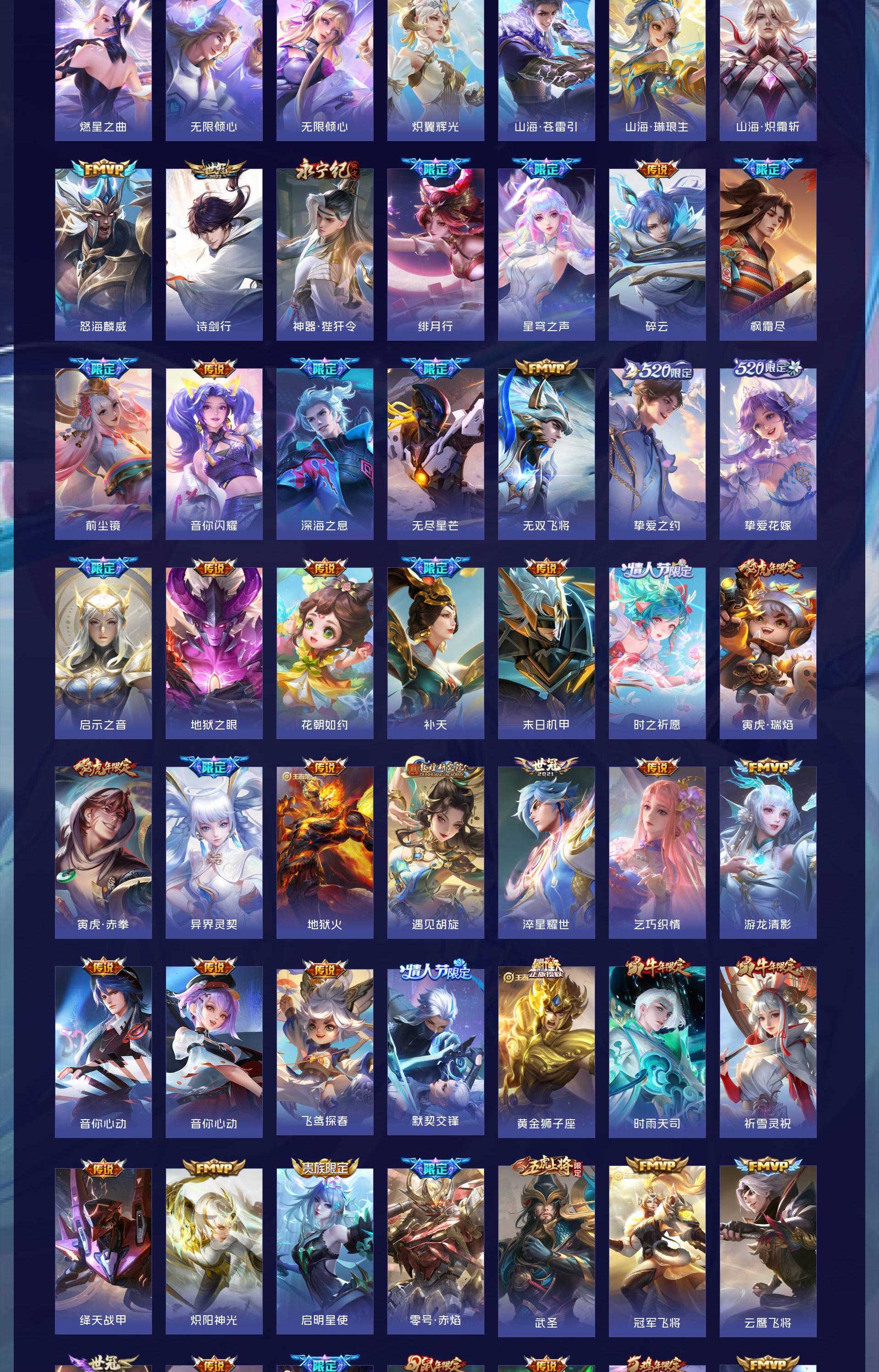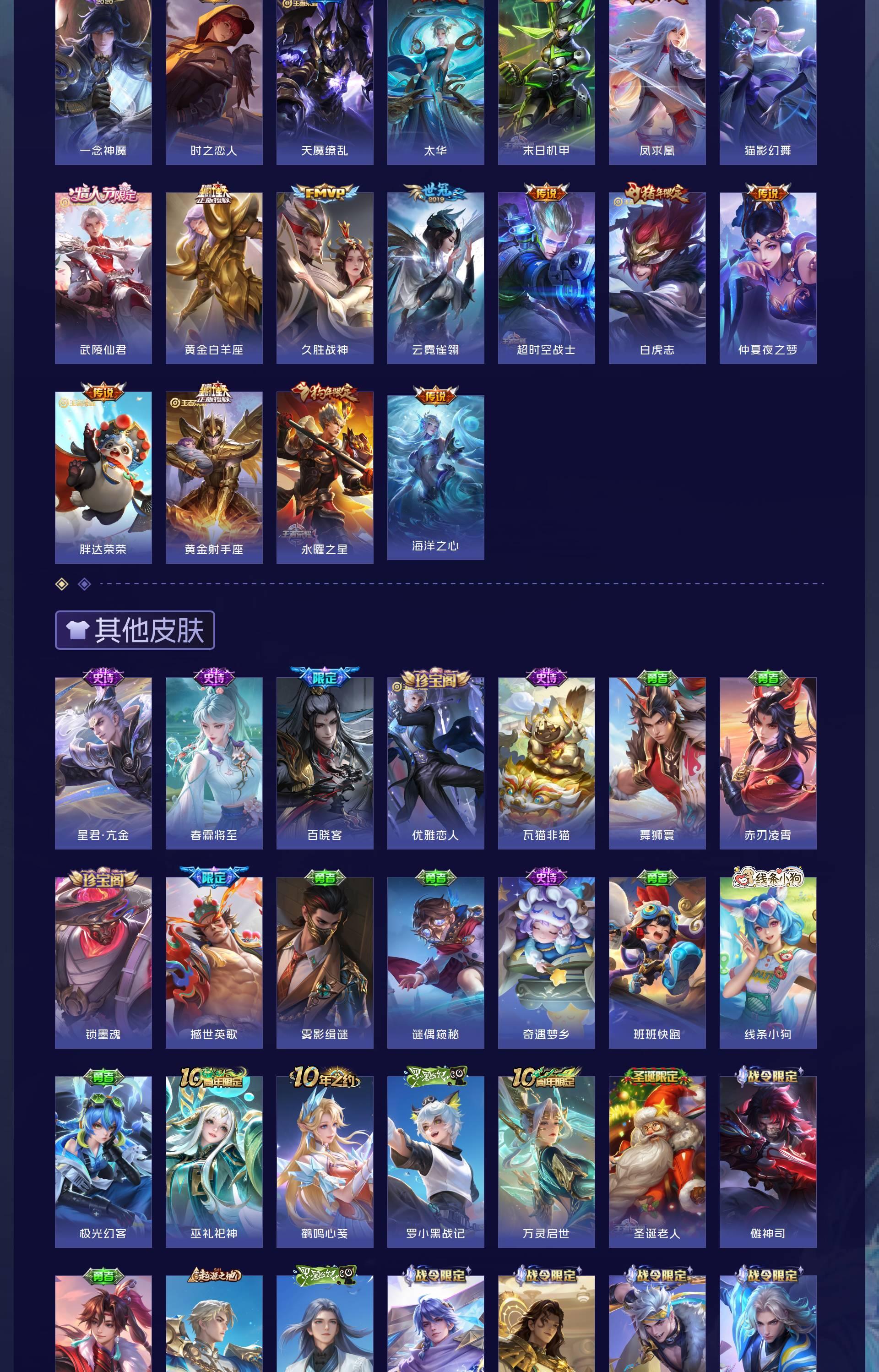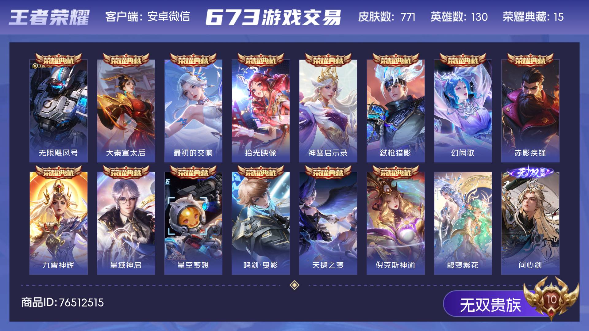 无双贵族 皮肤771 英雄130 最强王者 荣耀典藏15 珍品无双1 无双皮肤14 珍品传说10 传