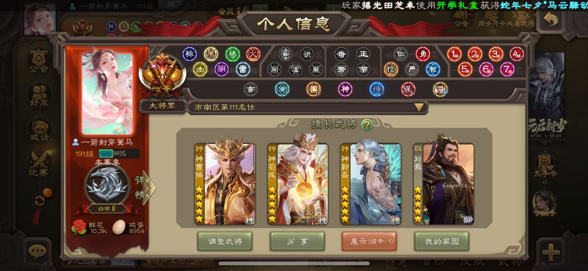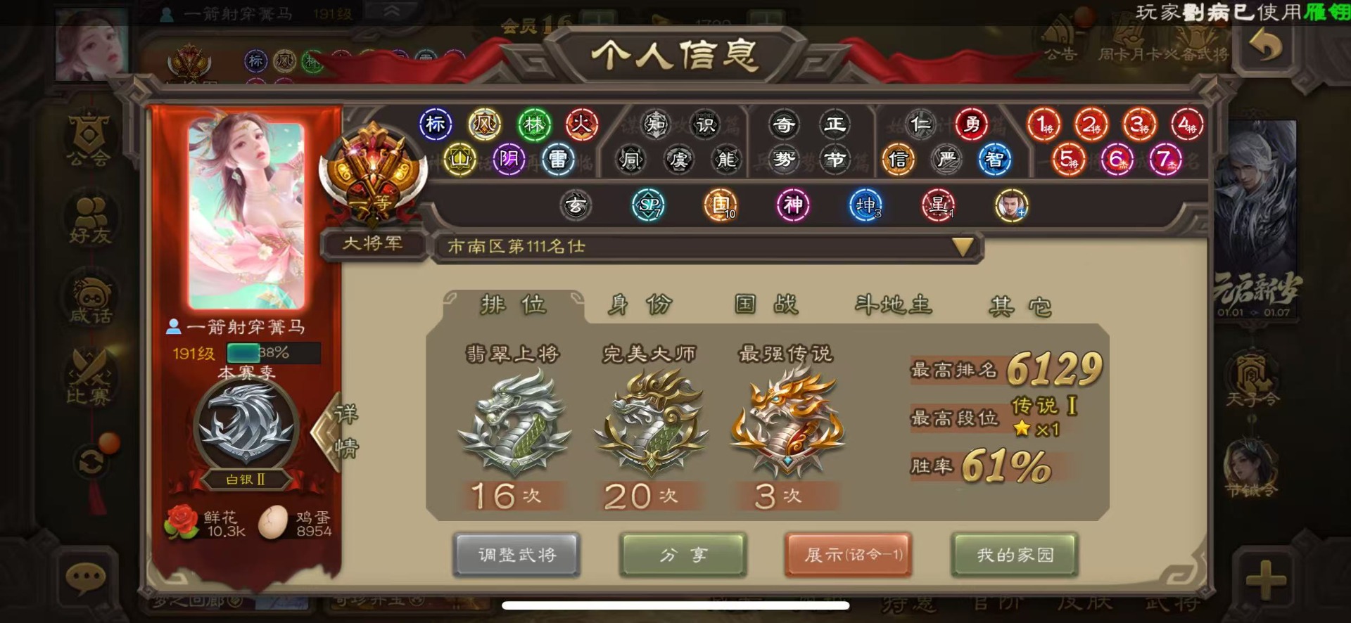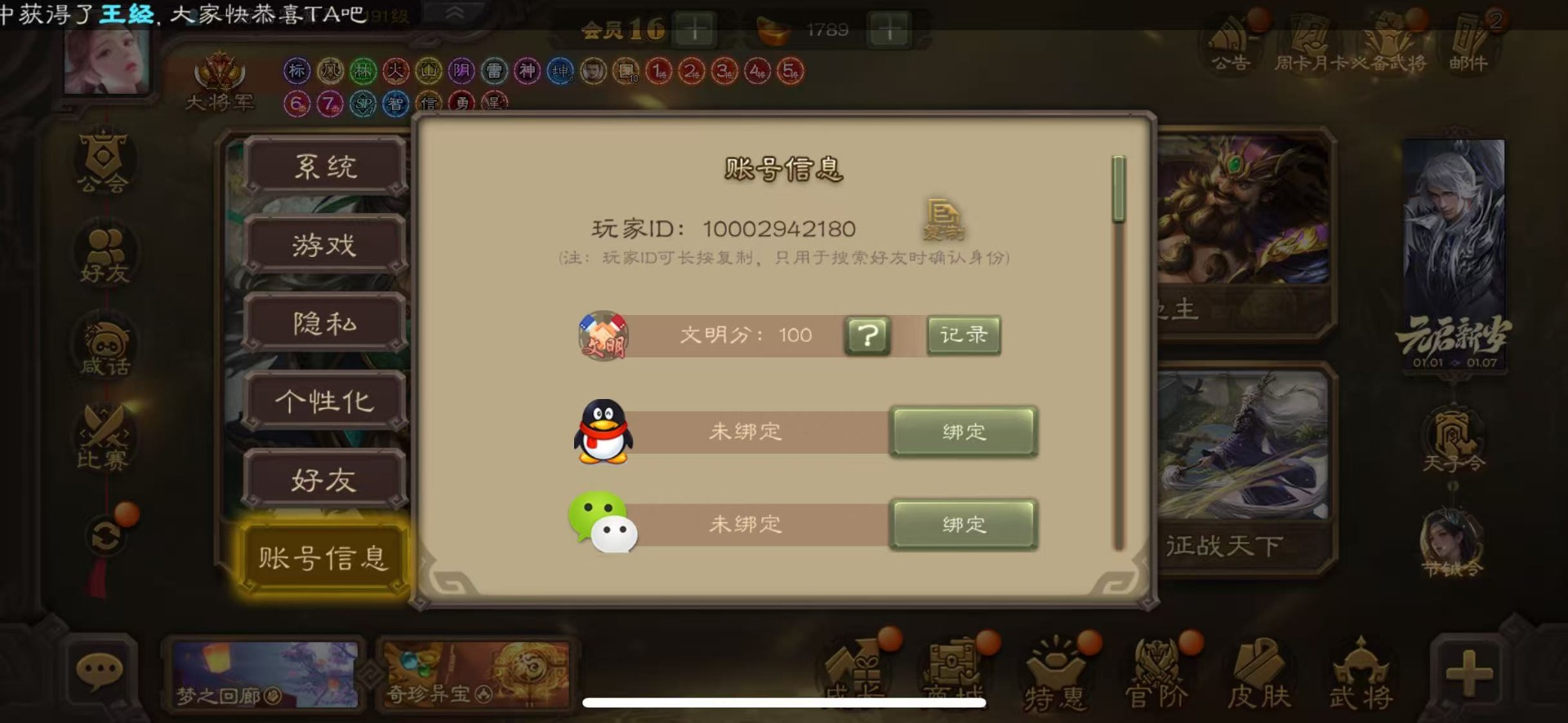 [16677419]VIP16 大将军 496武将 87动态皮肤 102史诗武将 32宝珠
