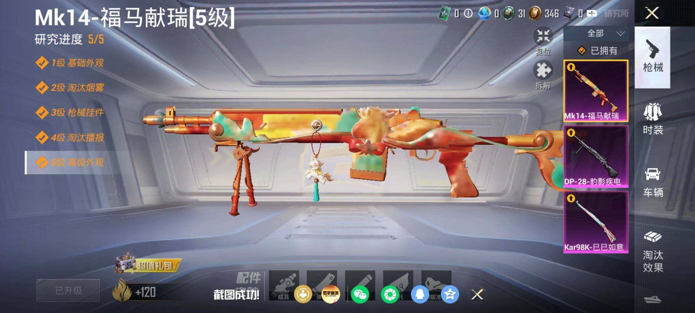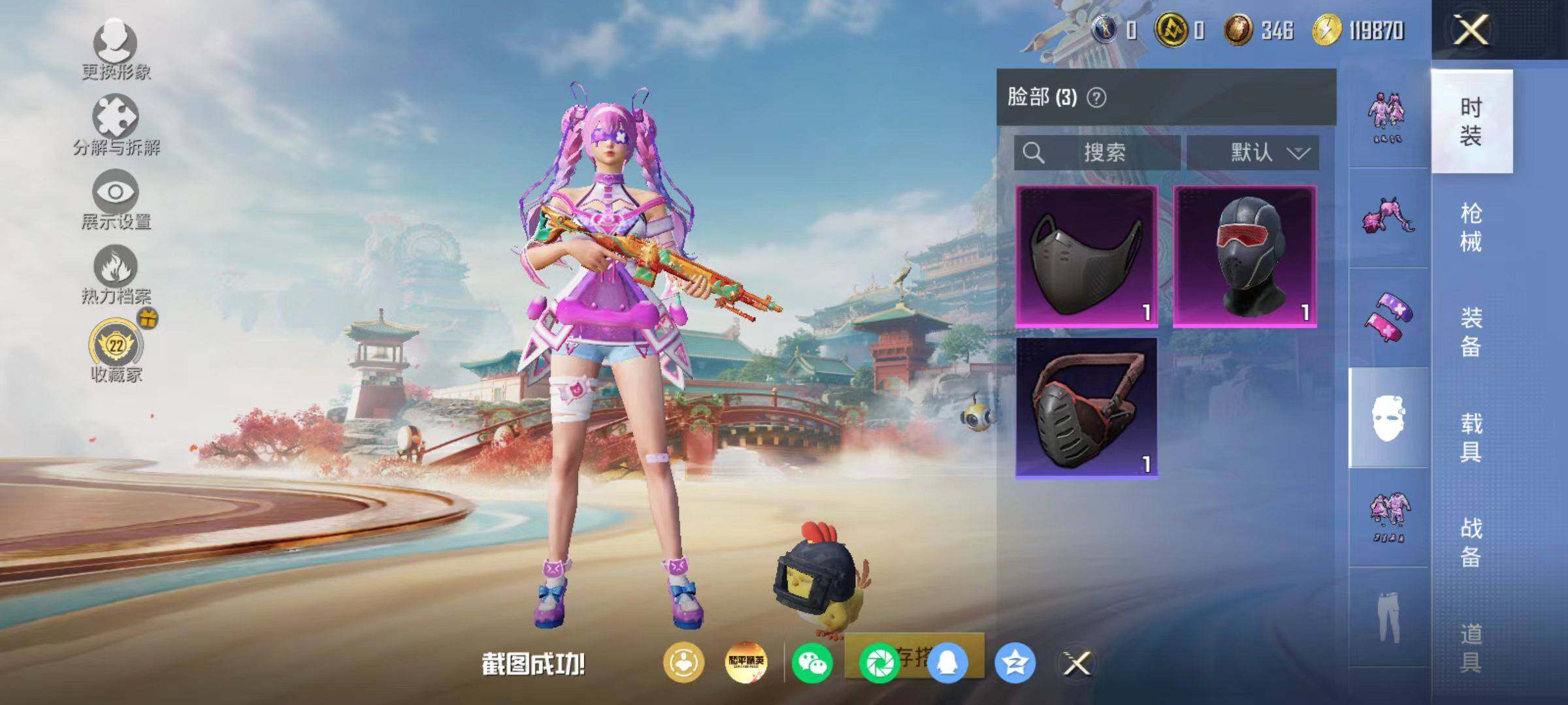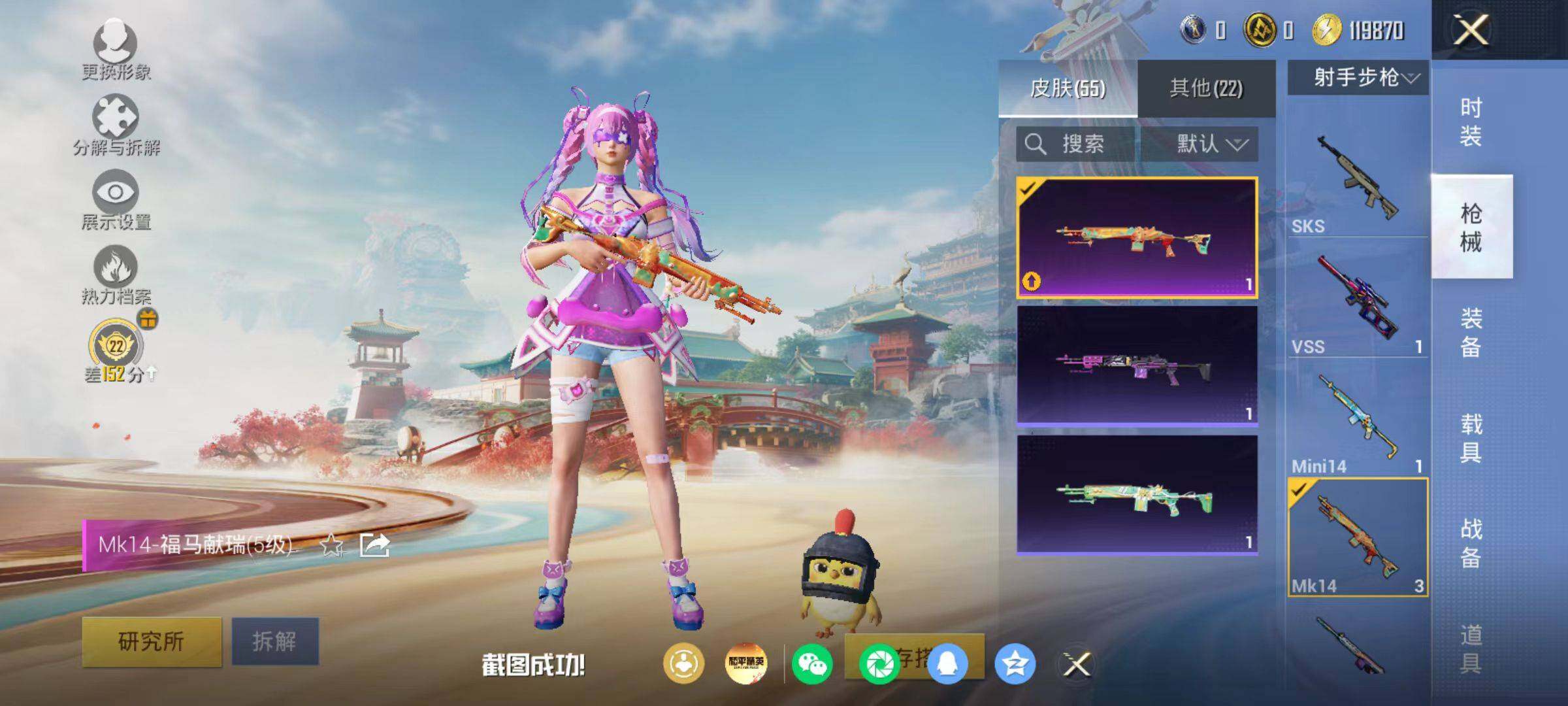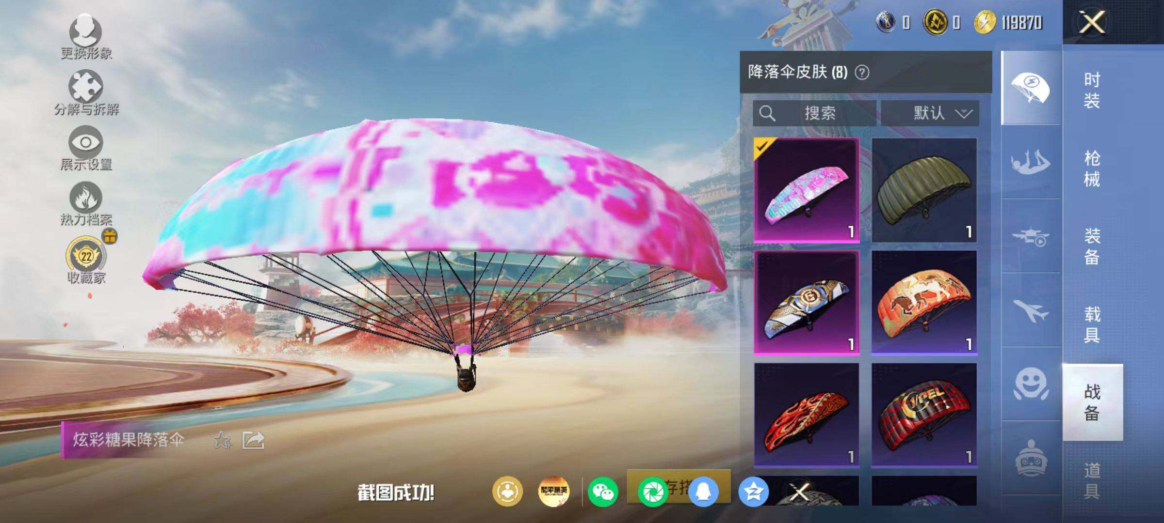 粉枪3/珍稀飞行器130245/套装21/枪皮55/热力值11334/历史最高段位:王牌印记0次/Lv:17/五级Kar98K-巳巳如意/五级Mk14-福马献瑞/五级DP-28-豹影疾电/Kar98K-巳巳如意/Mk14-福马献瑞/DP-28-豹影疾电/炫彩糖果飞行器/极意拳锋降落伞/炫彩糖果降落伞/套装-雪国风尚/套装-炫彩糖果/套装-马上来财/套装-迅捷龙虾/AUG-冰晶雪宝/AKM-龙的传