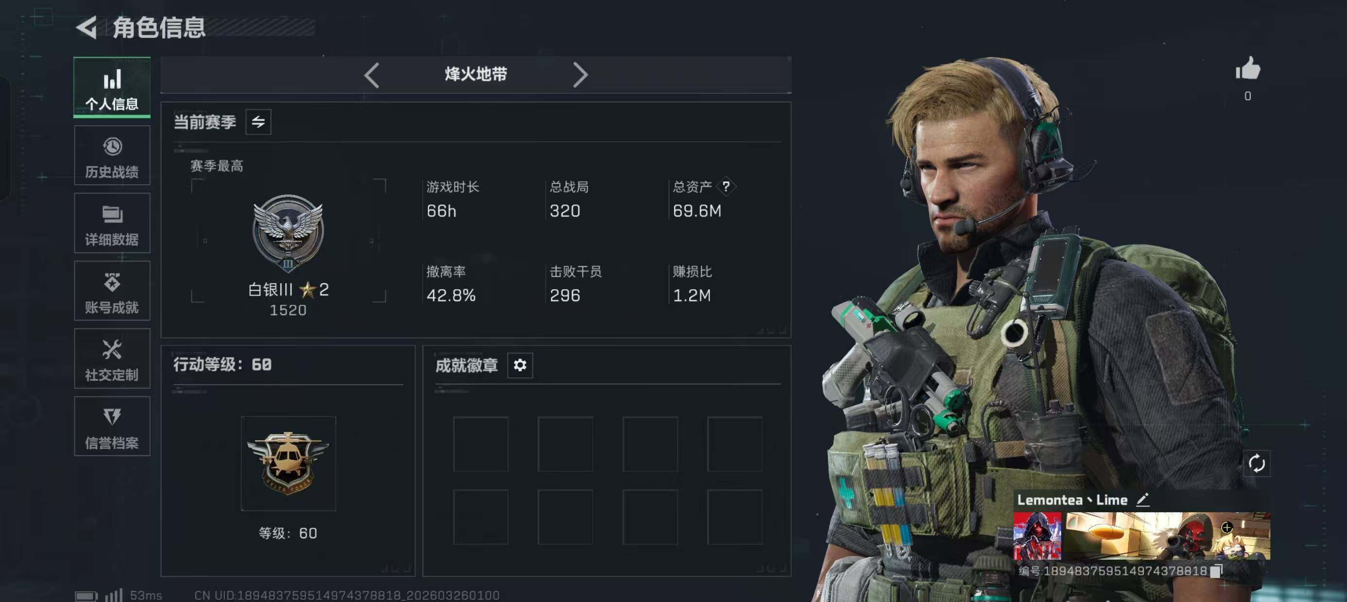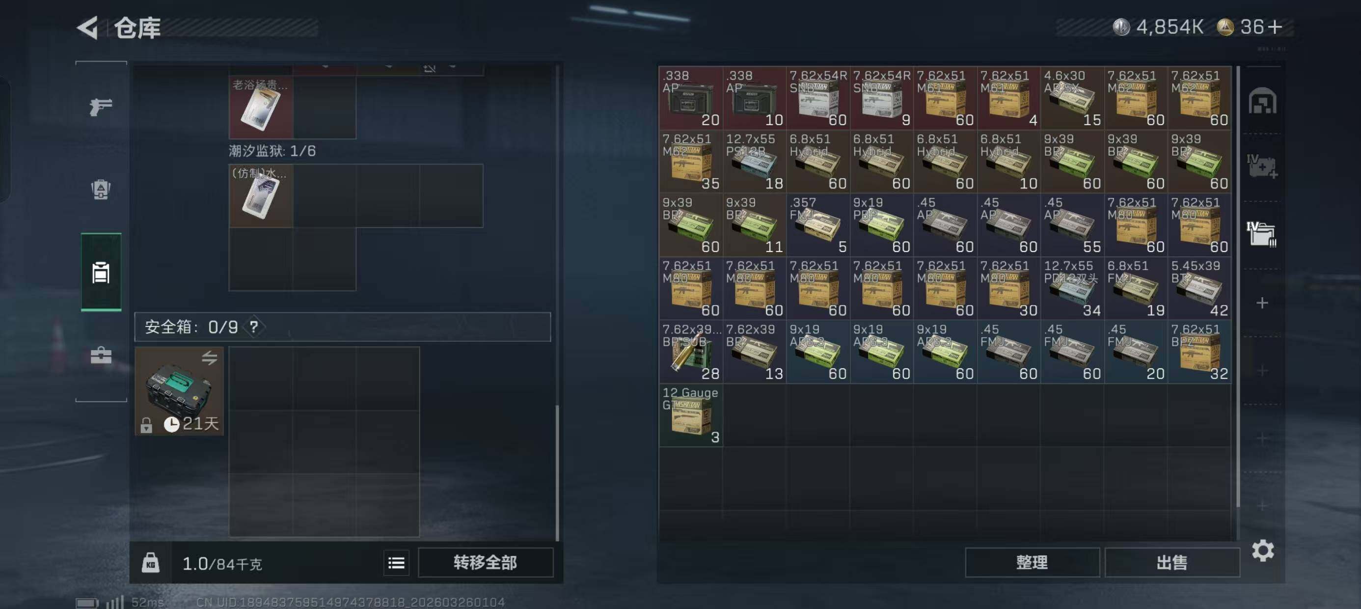 【2845】总资产(M):69M/哈夫币(K):4854K/哈夫币(K):4854K/传说枪皮数:12/全面战场等级:5_段位:无段位/烽火地带等级:60_段位:白银/近战-暗星/近战-处刑者1级/近战-黑鹰/AKM突击步枪-锦绣/K416突击步枪-行动记录/腾龙突击步枪-万金泪冠/K437突击步枪-锦绣/MK47突击步枪-暗星/SMG-45冲锋枪-锦绣/SR-3M紧凑突击步枪-暗星/勇士冲锋枪