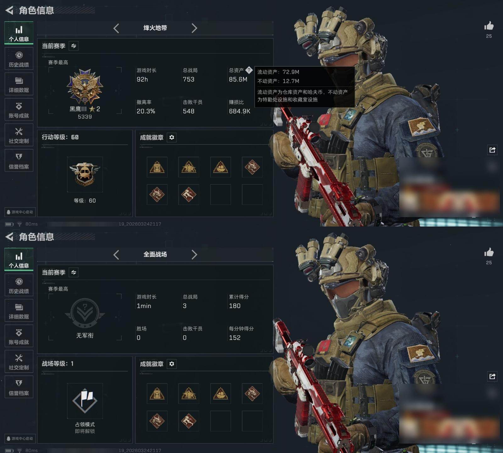 【2816】总资产(M):85M/哈夫币(K):141K/哈夫币(K):141