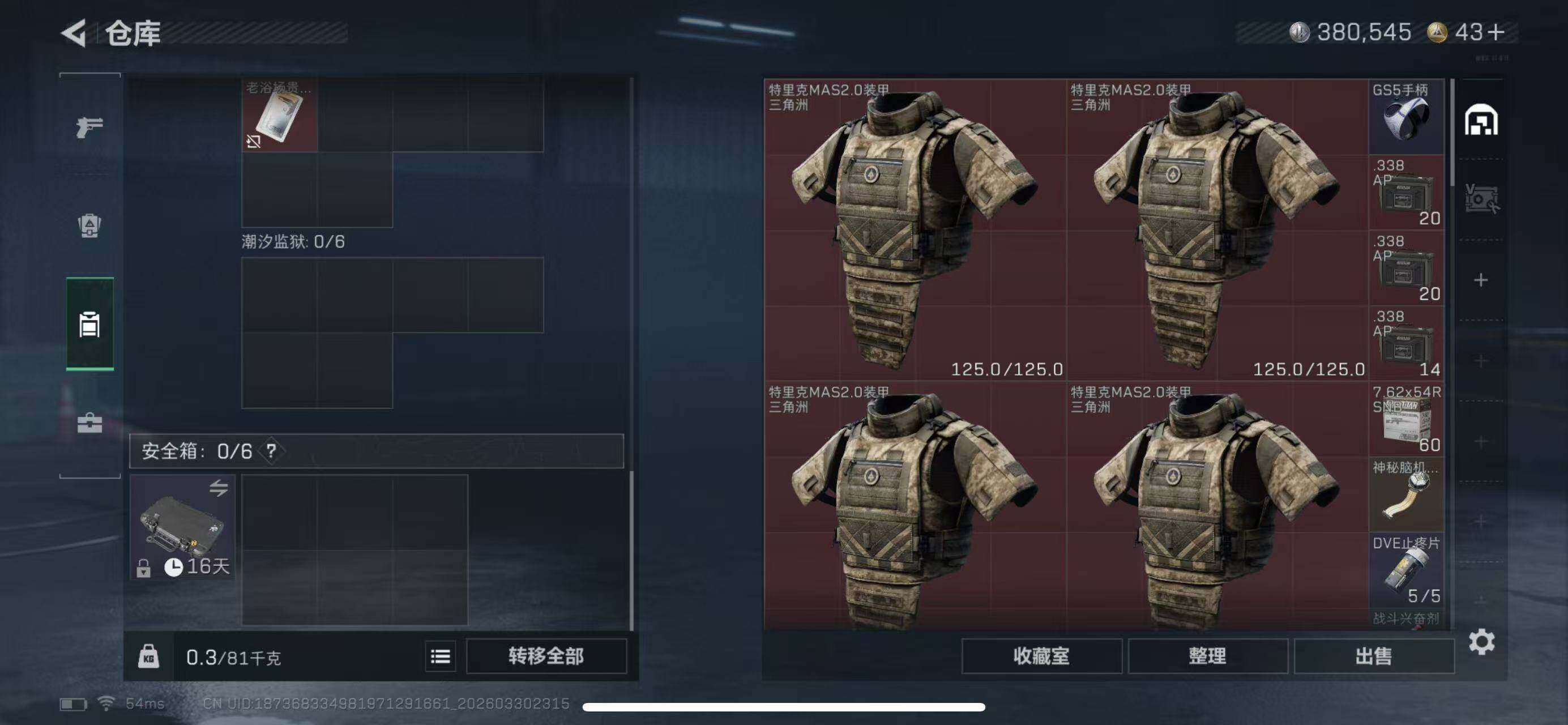 【SJ1609】行动等级:60 总资产:53.8M 哈夫币:7.0W 近战武器
