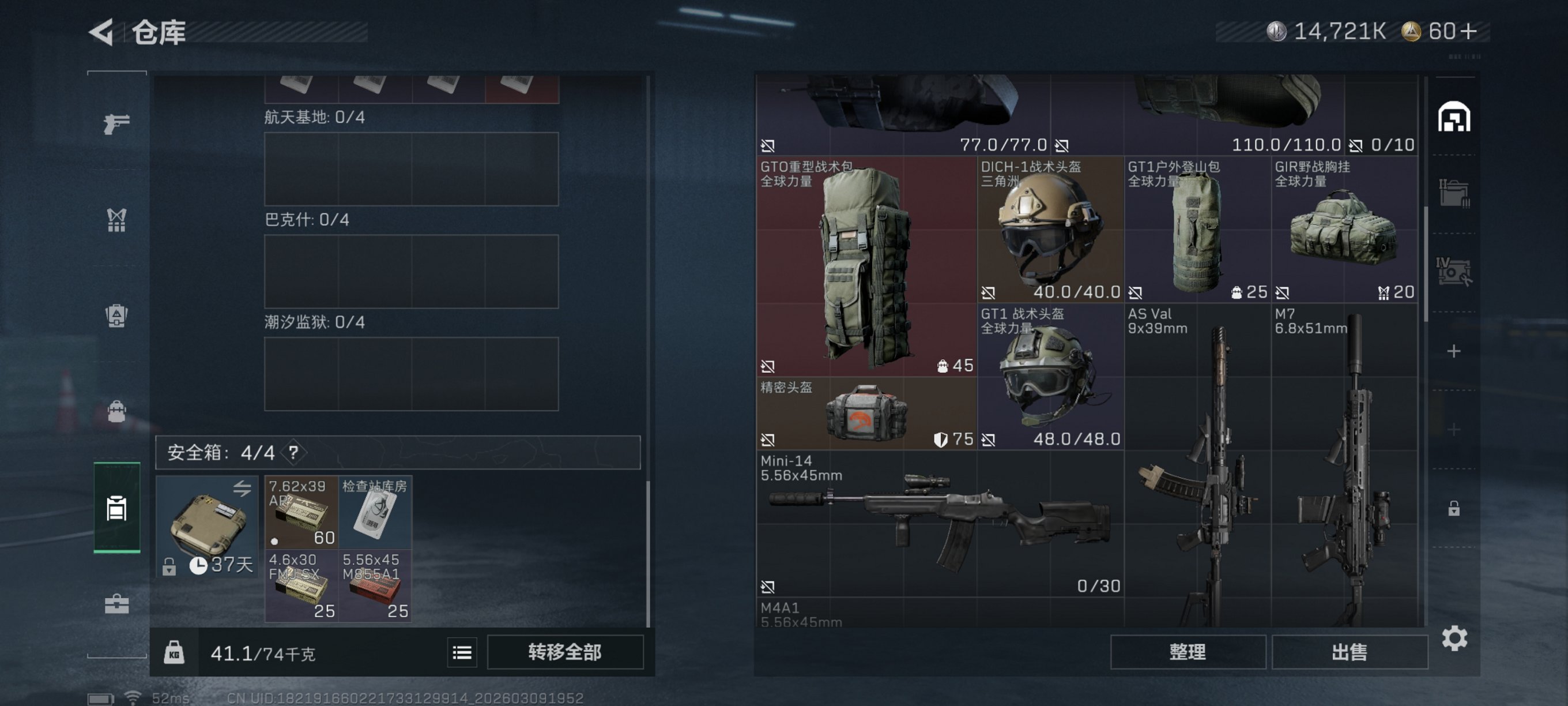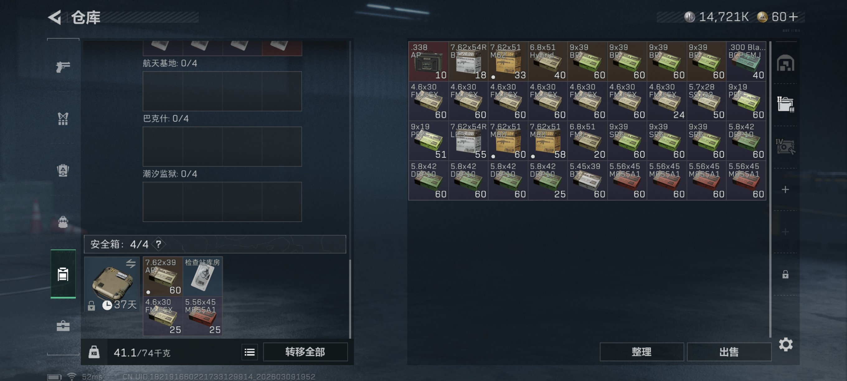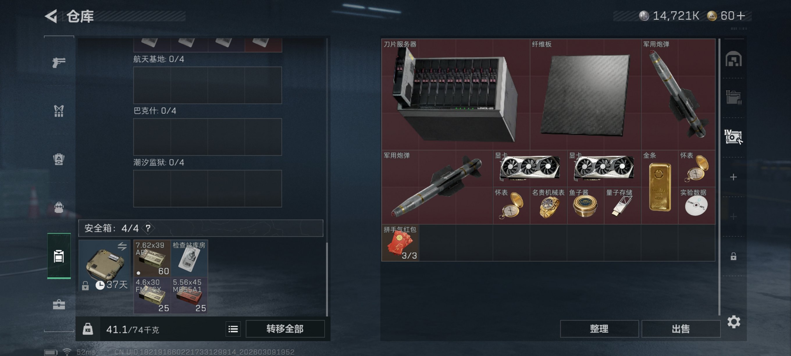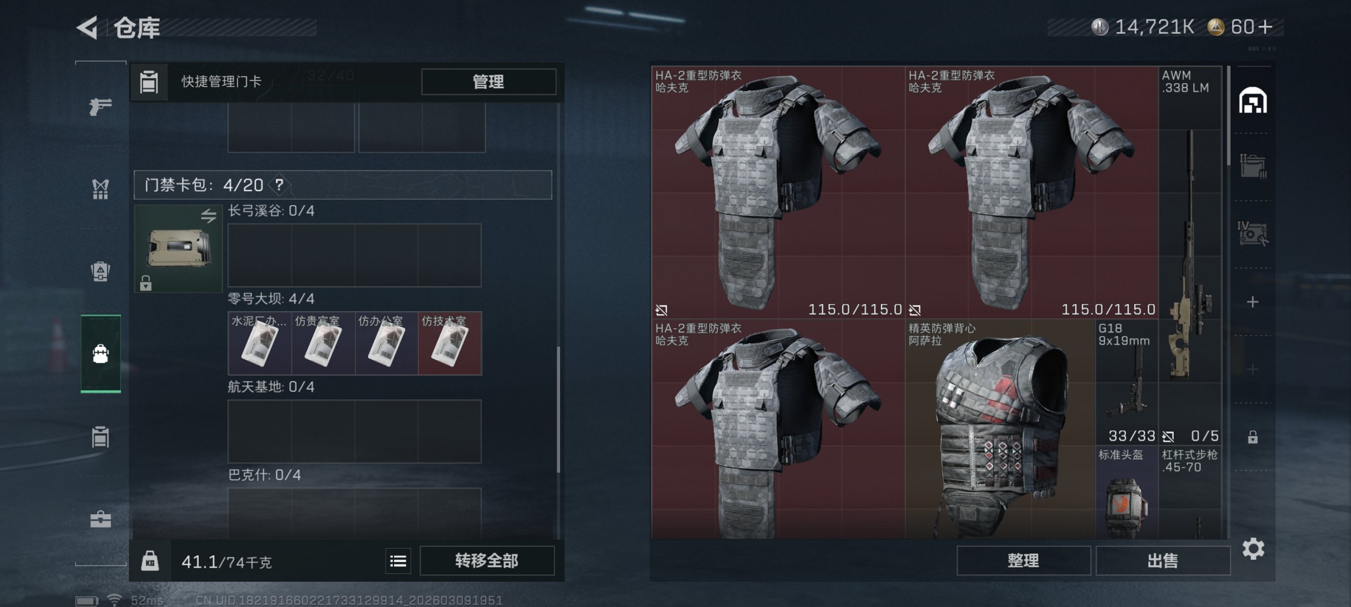 【红皮威龙 10颗AW子弹 总资产58M,哈夫币14,721K,行动等级:30