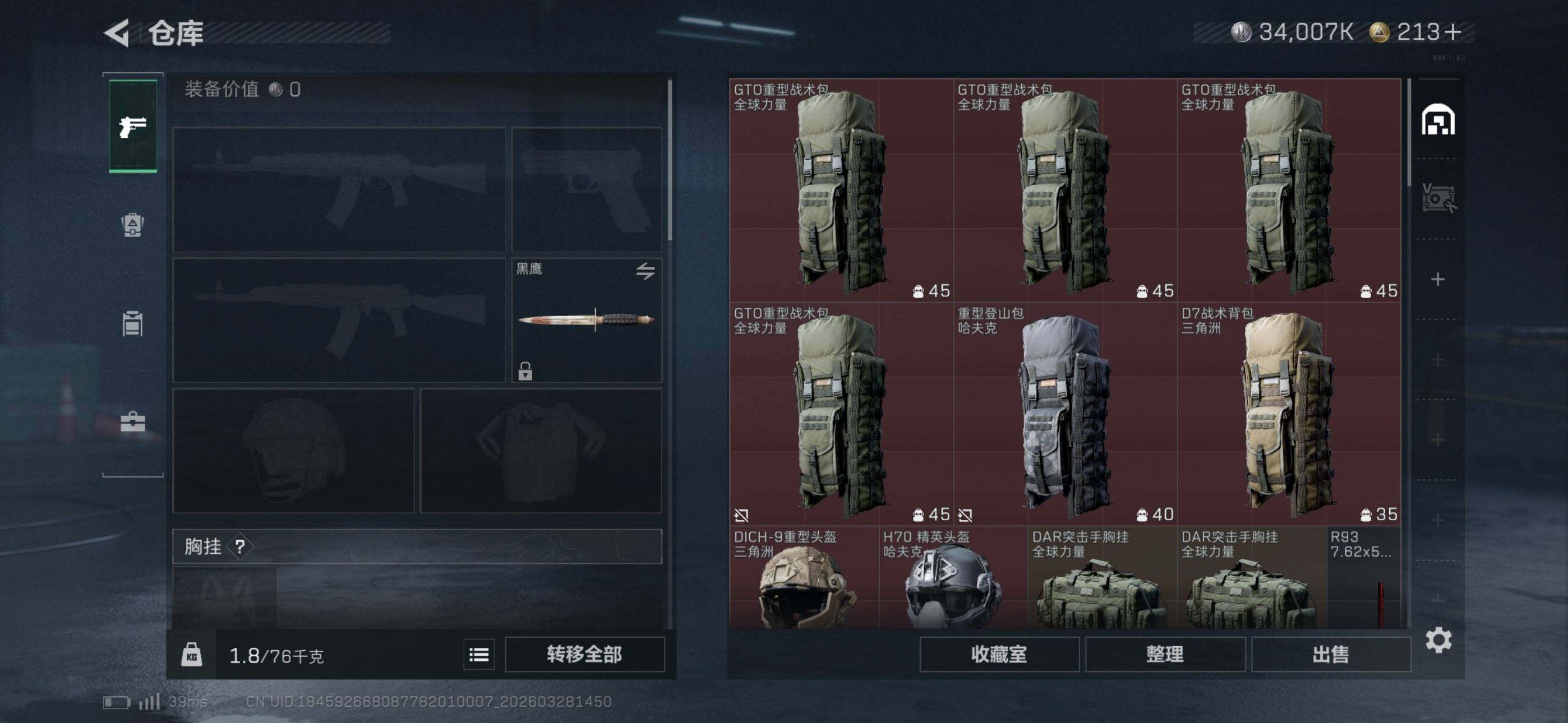 【SJZYT747】总资产(M):149M/哈夫币(K):34007K/哈夫币(K):34007K/传说枪皮数:10/全面战场等级:1_段位:无段位/烽火地带等级:60_段位:黑鹰/骇爪-维什戴尔/红狼-电锯惊魂/近战-处刑者1级/近战-黑鹰/M4A1突击步枪-阿米娅/AKM突击步枪-锦绣/SG552突击步枪-点翠/SCAR-H战斗步枪-启航/G3战斗步枪-骑士/K437突击步枪-锦绣/KC17