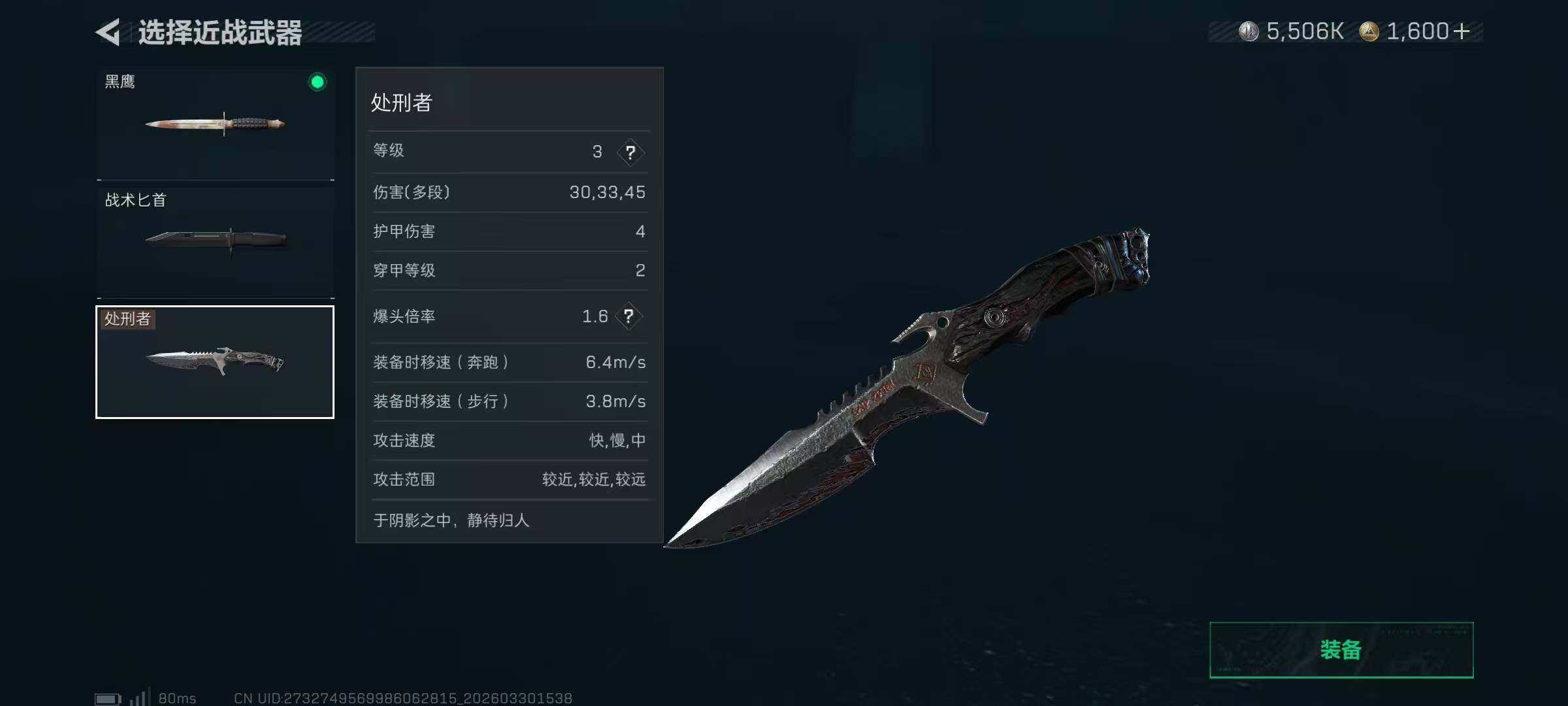 【近战皮肤】:近战-处刑者3级,近战-黑鹰