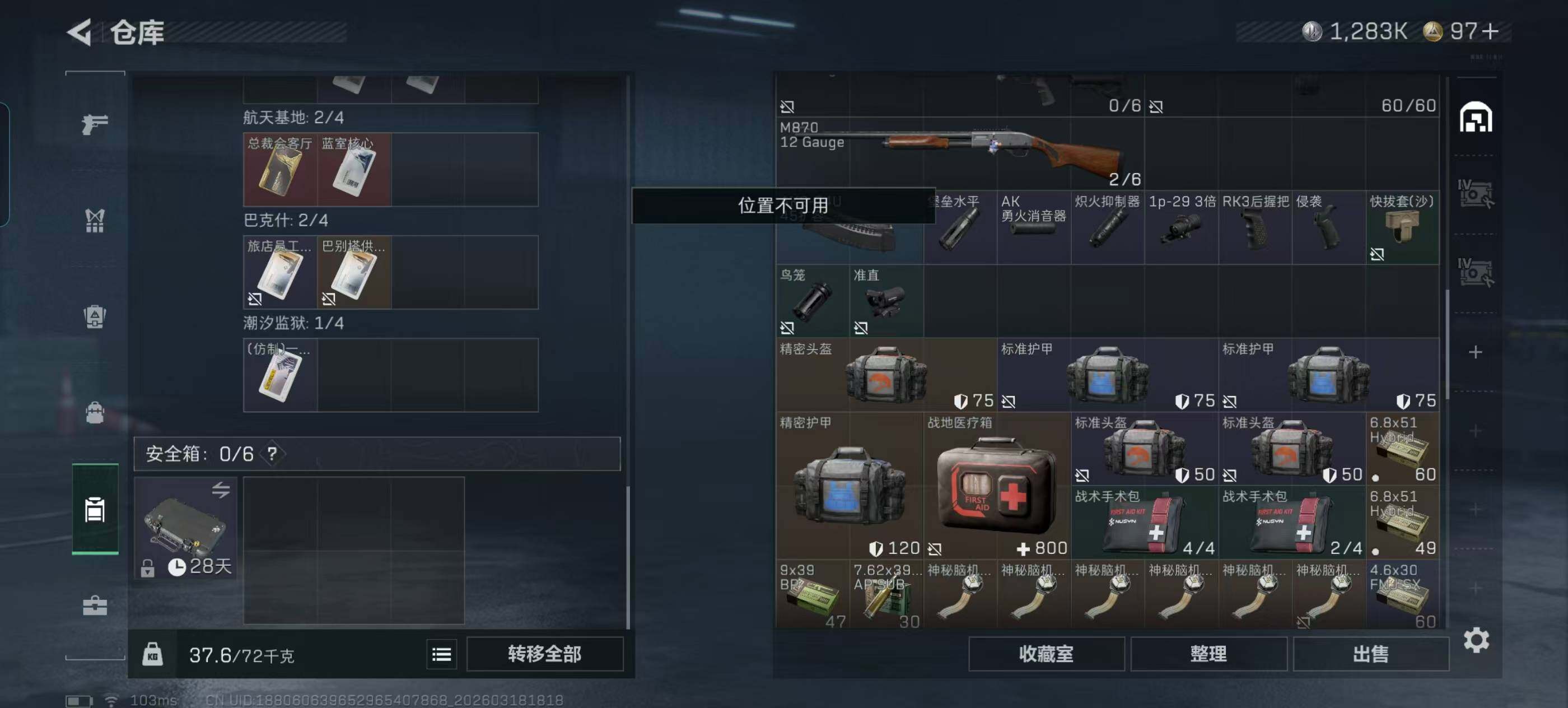 【SJ1458】49m总资产-1283k哈夫币-60烽火等级-钻石-46战场等