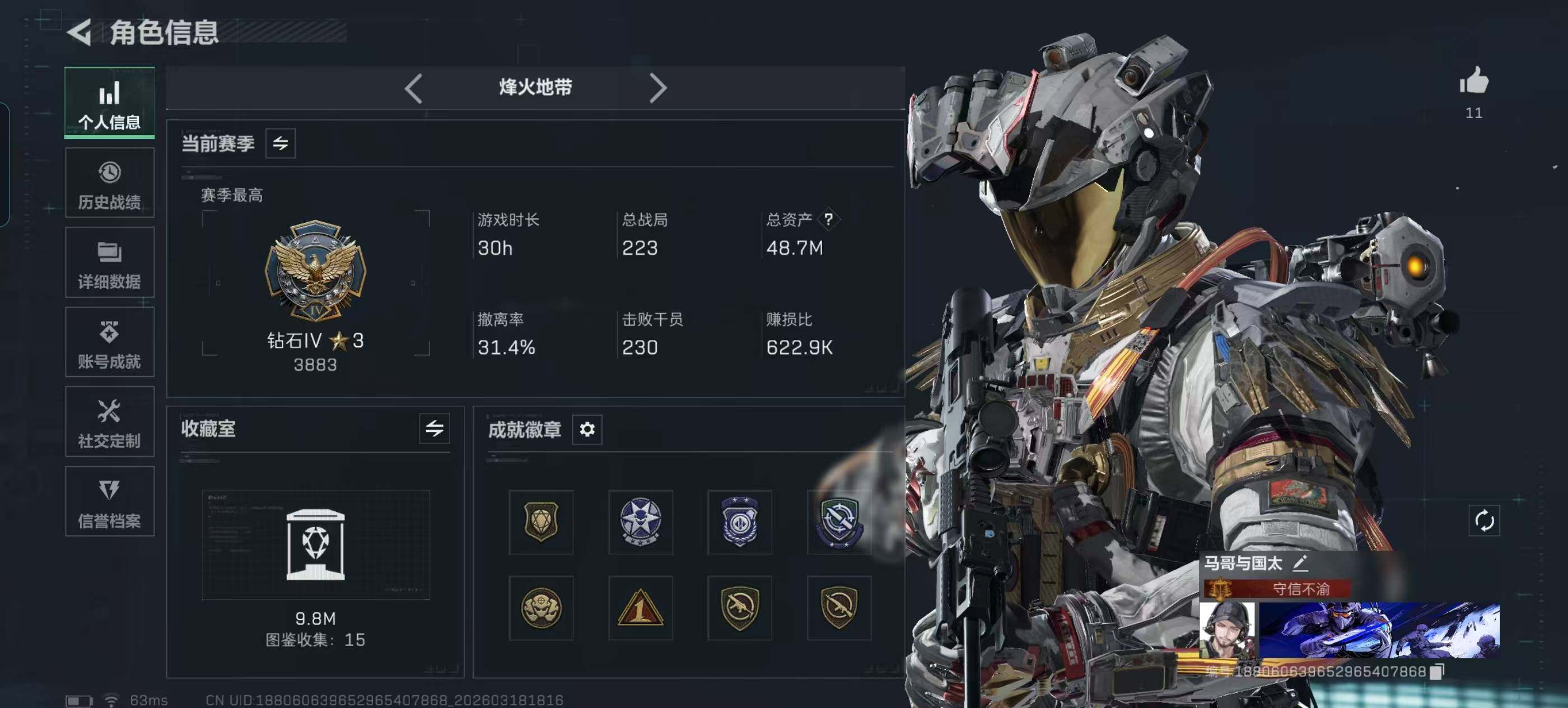 【SJ1458】49m总资产-1283k哈夫币-60烽火等级-钻石-46战场等级-上等兵
