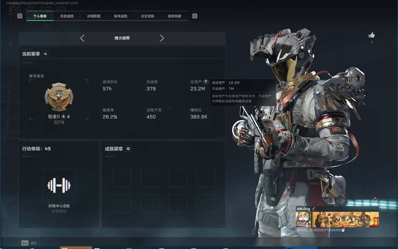 【SJZF7488】总资产(M):23M/哈夫币(K):3139K/哈夫币(K):3139K/传说枪皮数:12/全面战场等级:24_段位:军士长/烽火地带等级:49_段位:铂金/威龙-凌霄戍卫/蛊-不羁人生/近战-暗星/近战-黑鹰/QBZ95-1突击步枪-凌霄戍卫/AUG突击步枪-悠然茶歇/SCAR-H战斗步枪-启航/腾龙突击步枪-万金泪冠/MK47突击步枪-悠然茶歇/MK47突击步枪-暗星/U