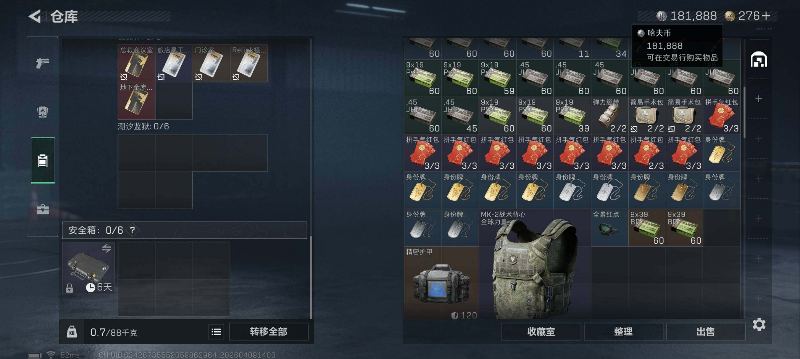 {特价出售}等级:60 总资产:70.6M 流动资产:14.1 M 纯币:181888 红皮:天际线黑 刀皮:电锯 特勤处:仓库,9训练7,靶场7