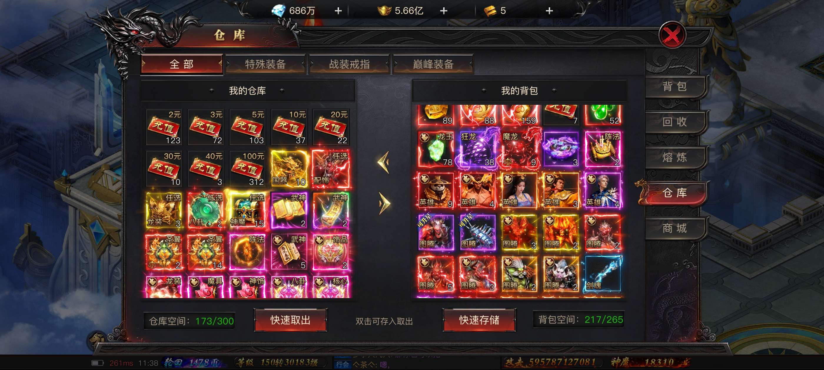 6000亿战力,6件10重魔龙粉。黄金裁决高官职熊猫终身龙神八卦原力修真天界图腾等特权都开了