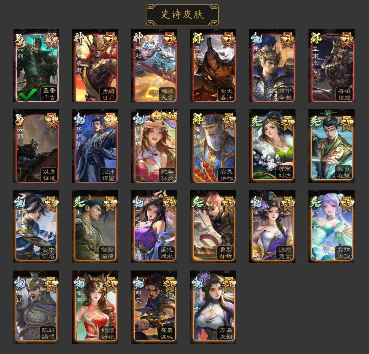 官阶:中军将军;VIP等级:VIP8;史诗武将数量:9;动态皮肤数量:9;武将
